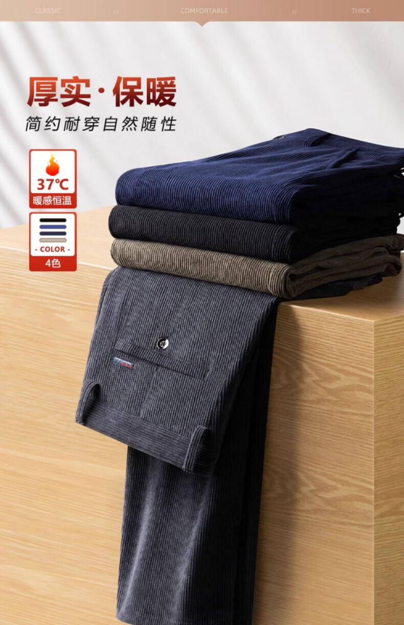 NASAOVER Pantalones de pana de alta gama para hombres de lujo ligeros Estilo otoño e invierno más pantalones de pierna recta de negocios cálidos de terciopelo Pantalones de hombre de marca Azul de alta gama Retornable con seguro de envío más terciopelo 33 Recomendado 130-140 Jin Jin equivale a 0,5 kg