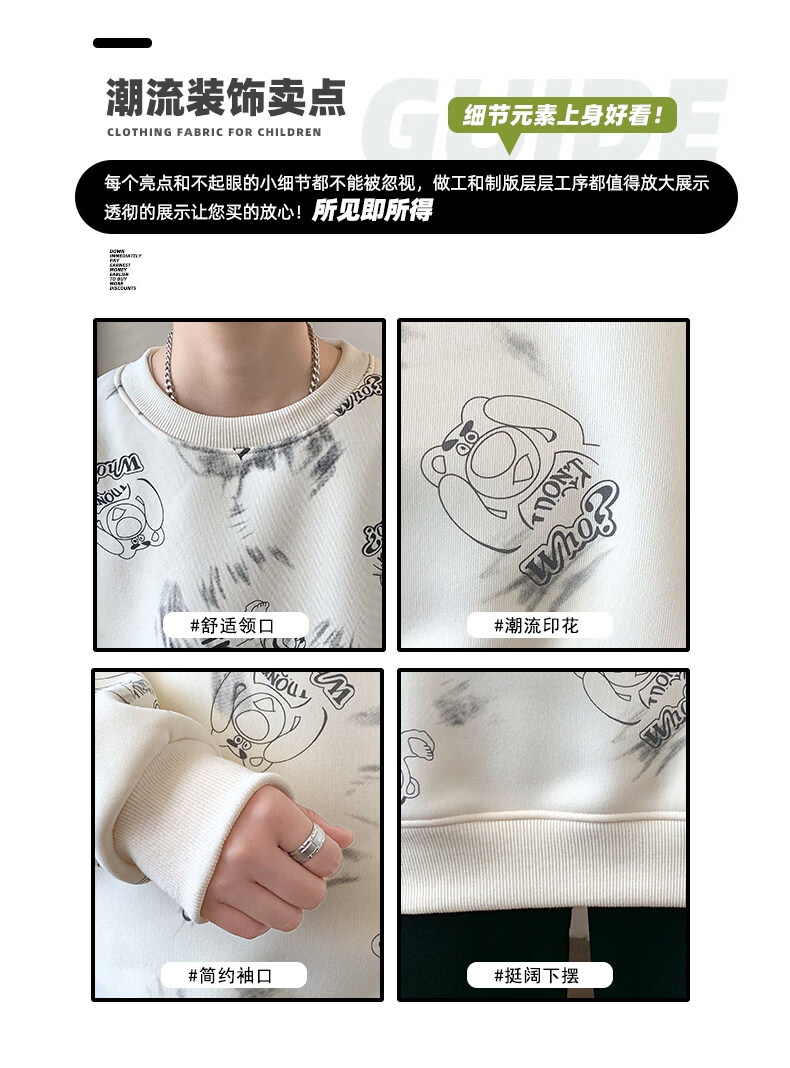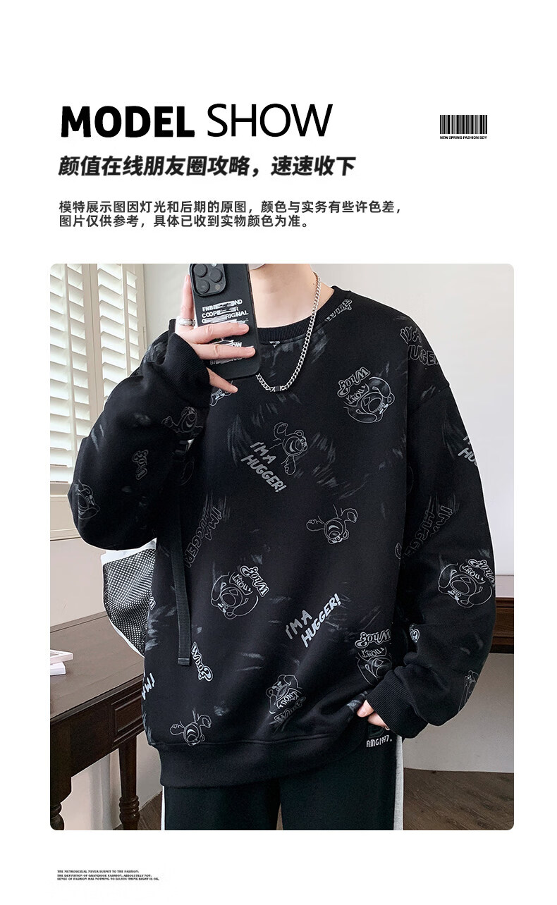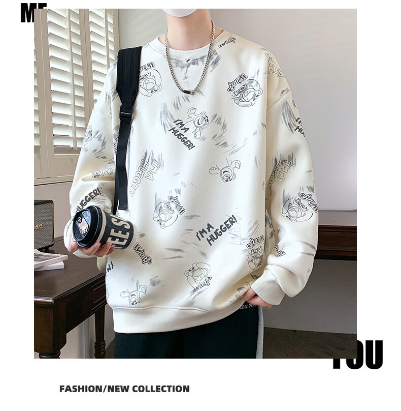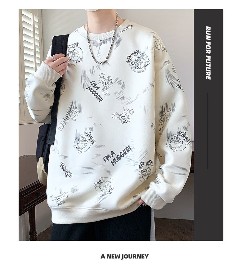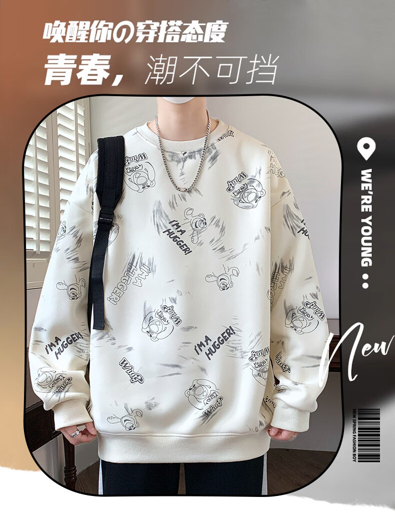 Playboy (PLAYBOY) sudadera con cuello redondo otoño e invierno nuevo terciopelo engrosamiento niños estudiantes de secundaria y adolescentes camisa de fondo para hombres de moda 517 metros terciopelo blanco engrosamiento cuello redondo XL peso recomendado 115-130 Jin Jin equivale a 0,5 kg