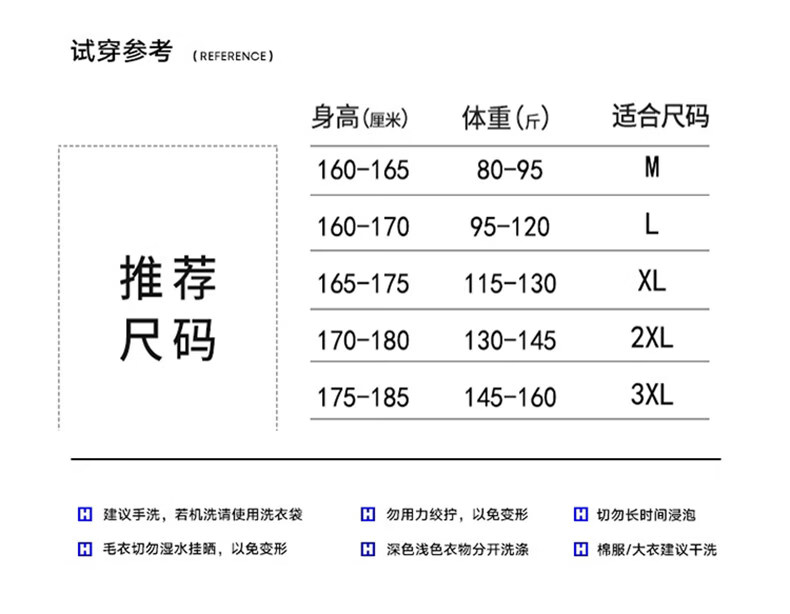 China (cm) 165 / 88-90 170 / 96-98 175 / 108-110 180 / 118-122 185 / 126-130