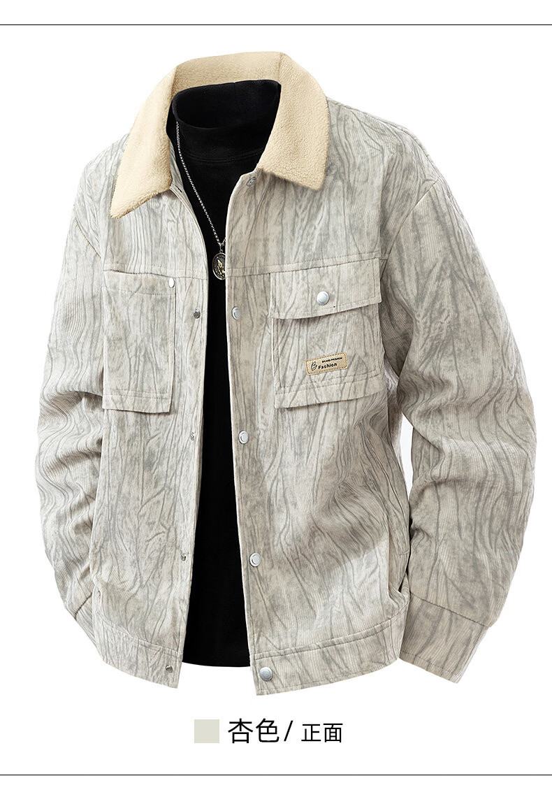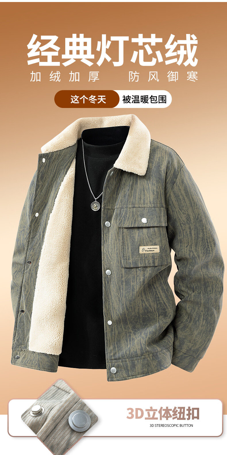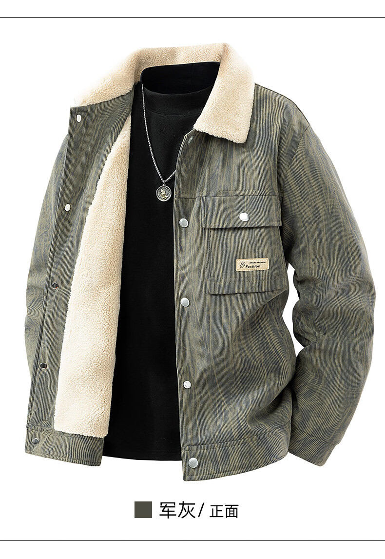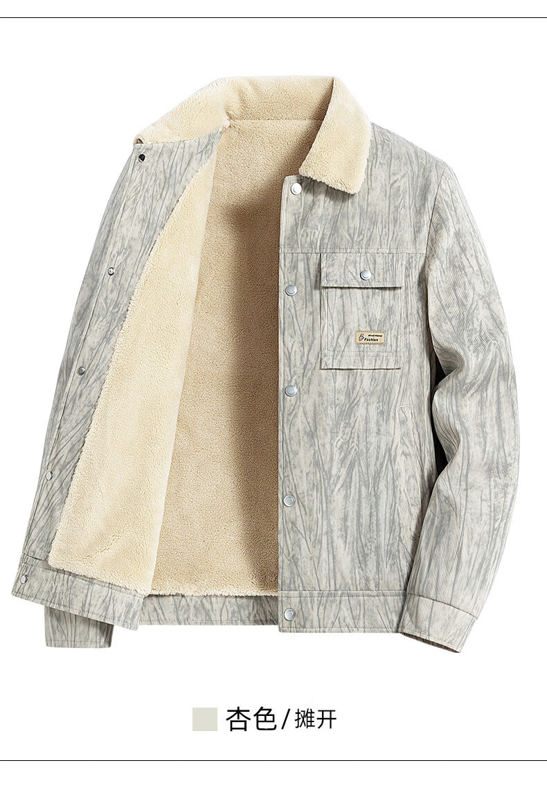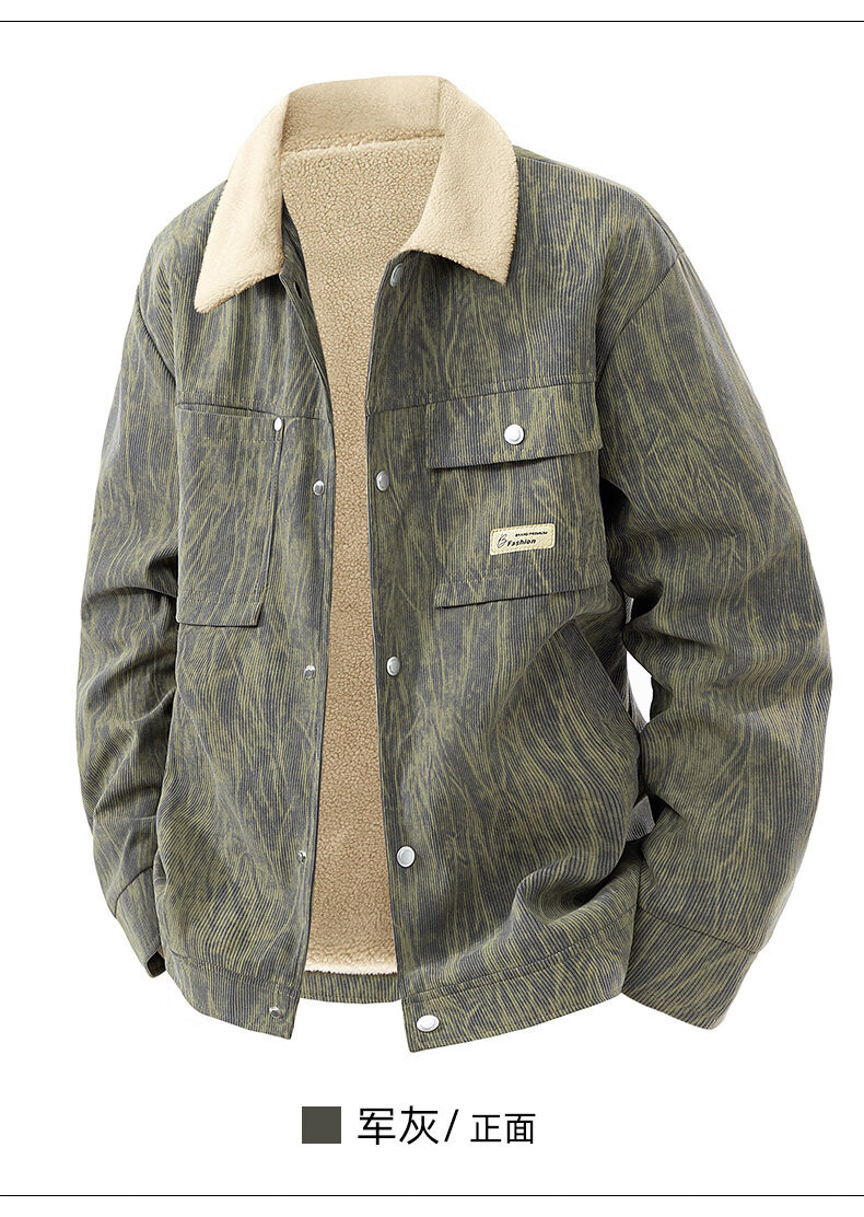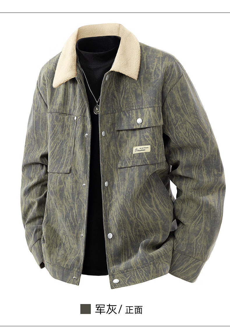 Woodpecker 2026 New Printed Corduroy Jacket Men's Velvet Thickened Lapel Casual Autumn and Winter New Granular Velvet Jacket Army Green XL Recommended 130-140Jin Jin equals 0.5 kg
