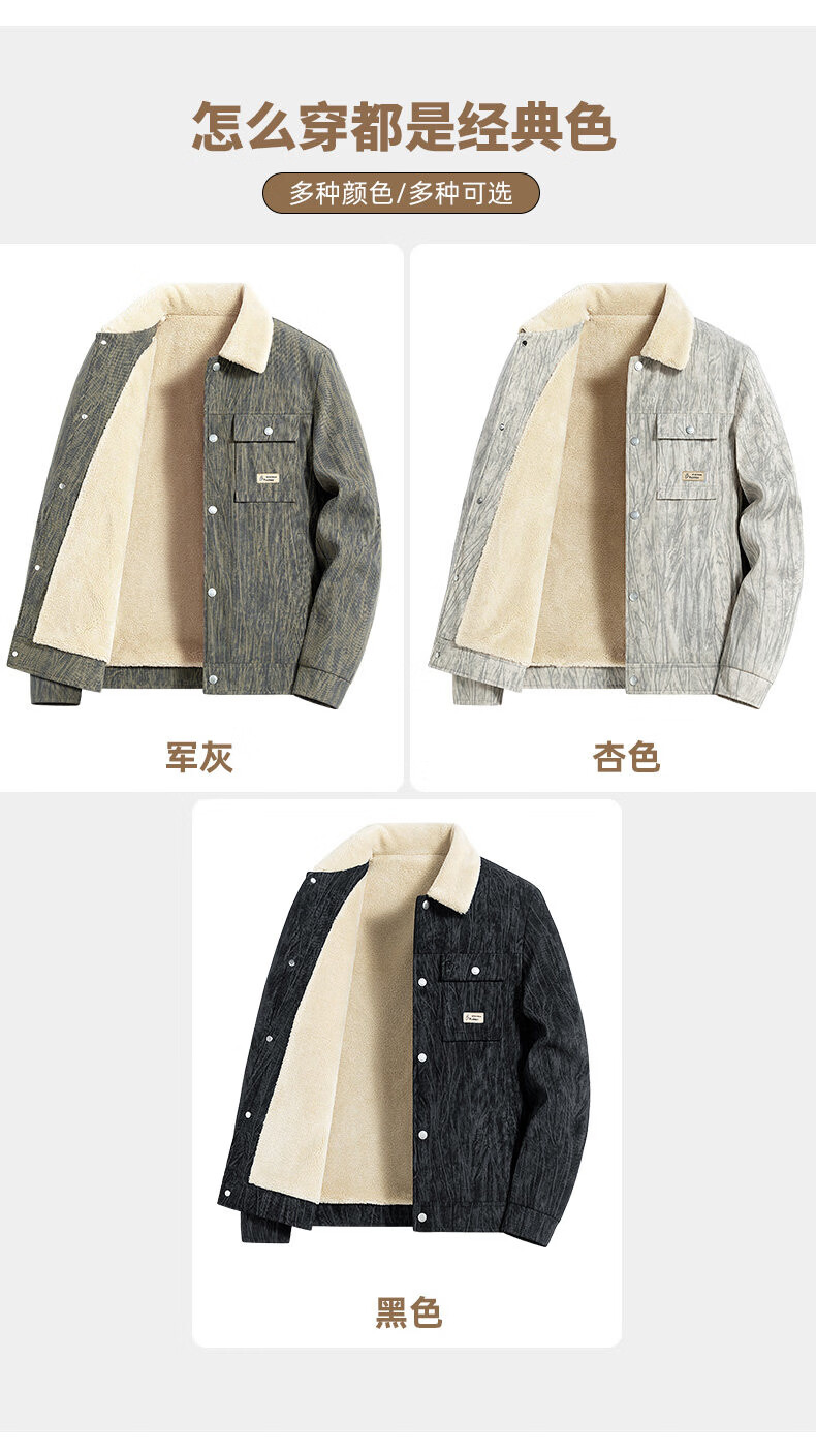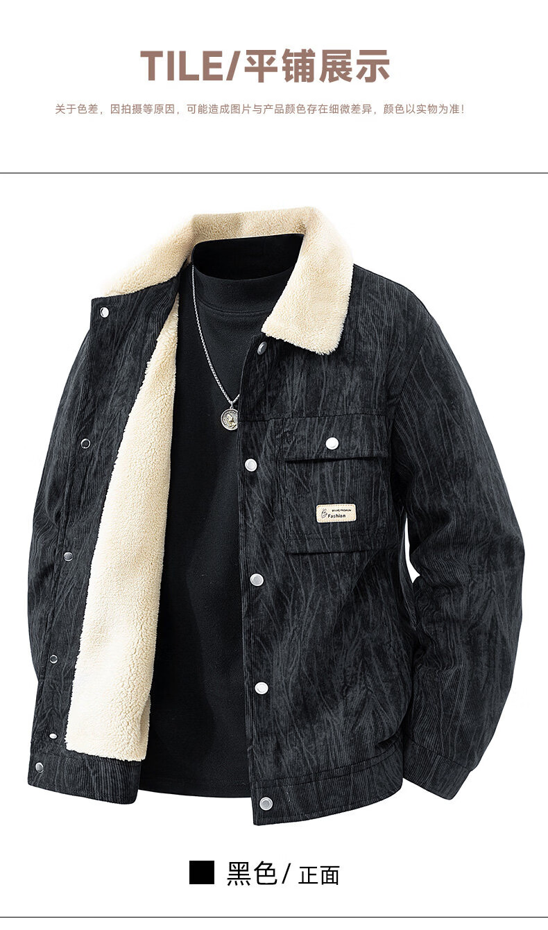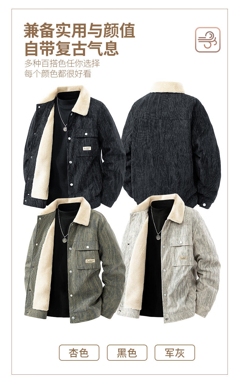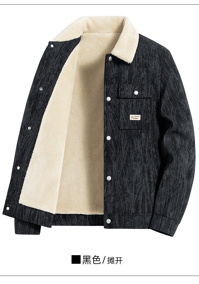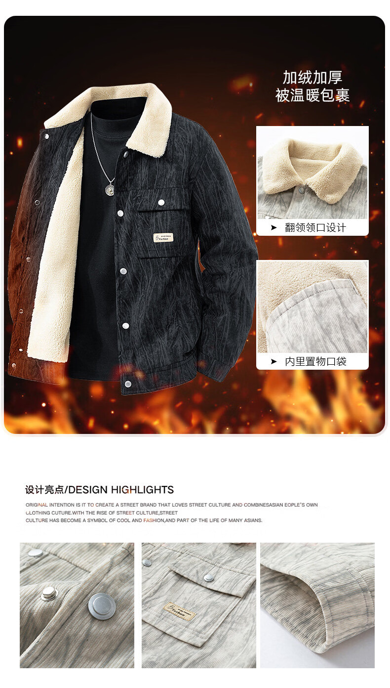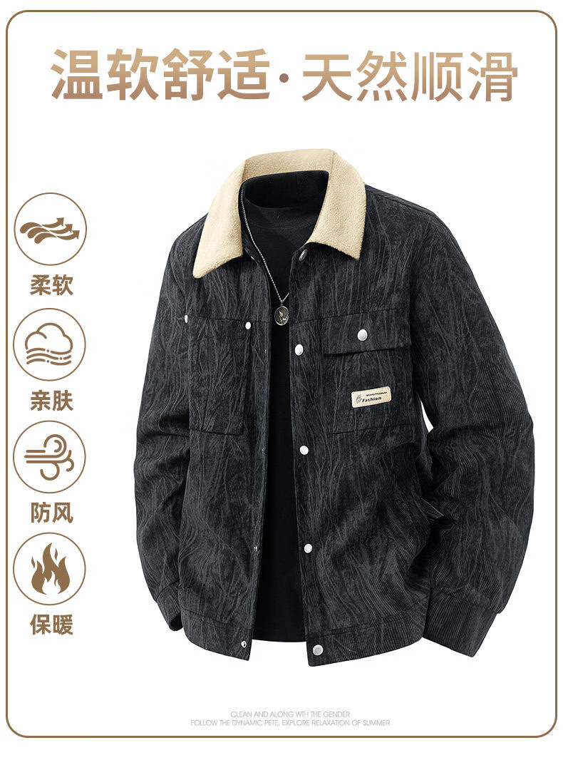 Woodpecker 2026 New Printed Corduroy Jacket Men's Velvet Thickened Lapel Casual Autumn and Winter New Granular Velvet Jacket Army Green XL Recommended 130-140Jin Jin equals 0.5 kg