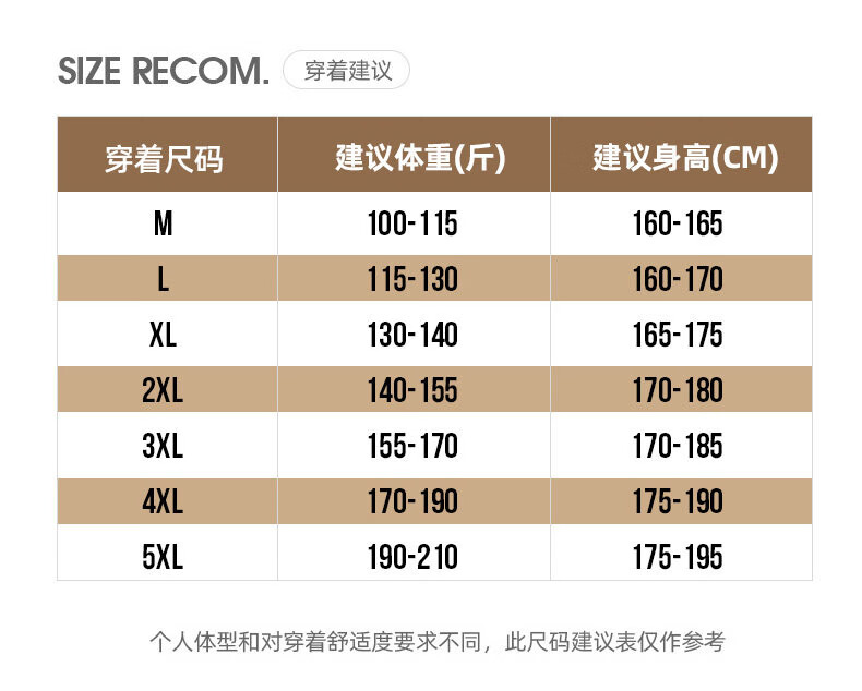 China (cm) 160-165/84-86 165-170 / 88-90 167-172 / 92-96 168-173 / 98-102 170-176 / 106-110