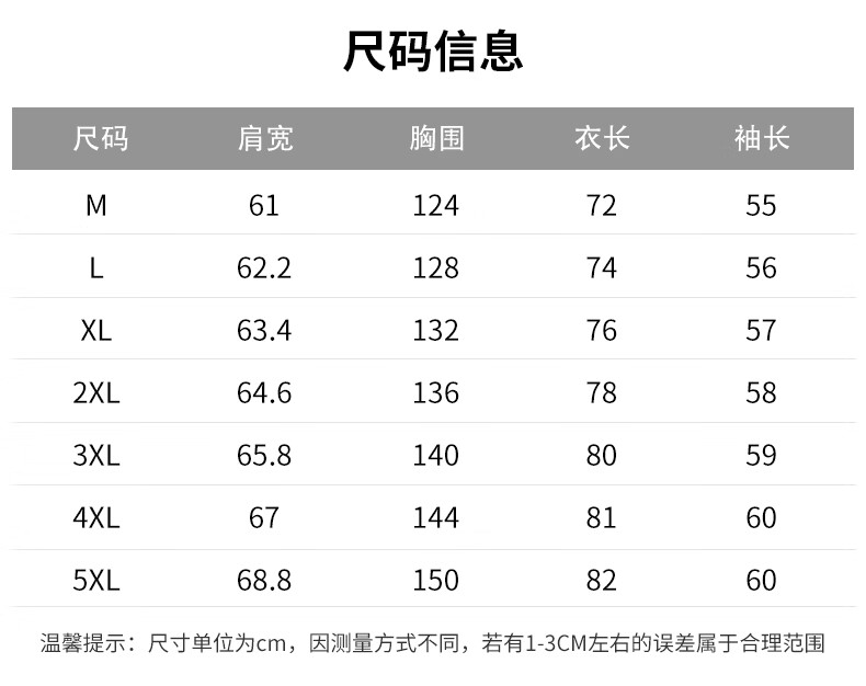 China (cm) 165 / 88-90 170 / 96-98 175 / 108-110 180 / 118-122 185 / 126-130
