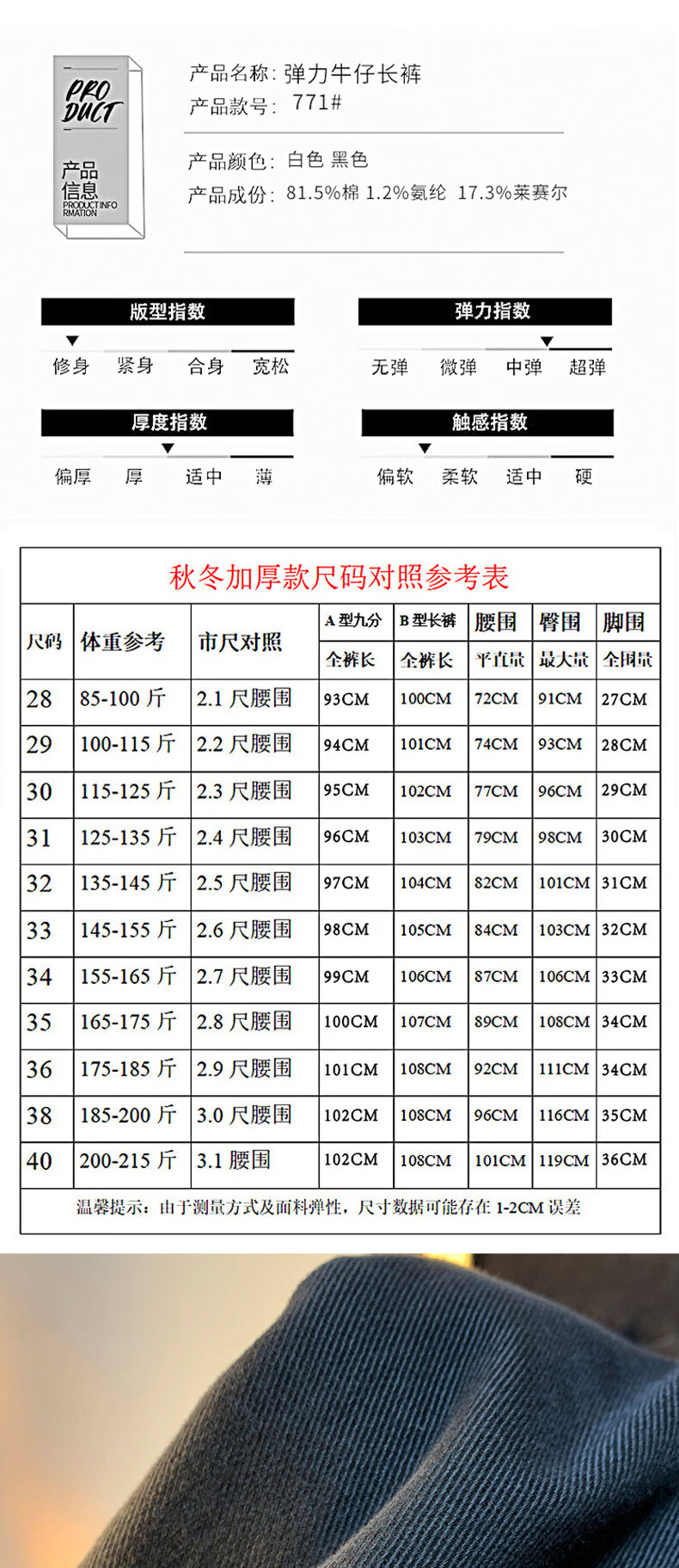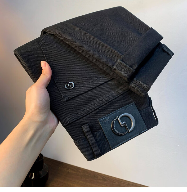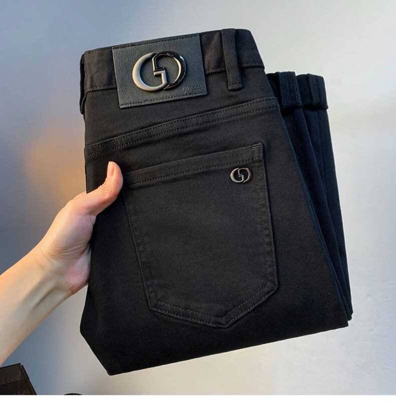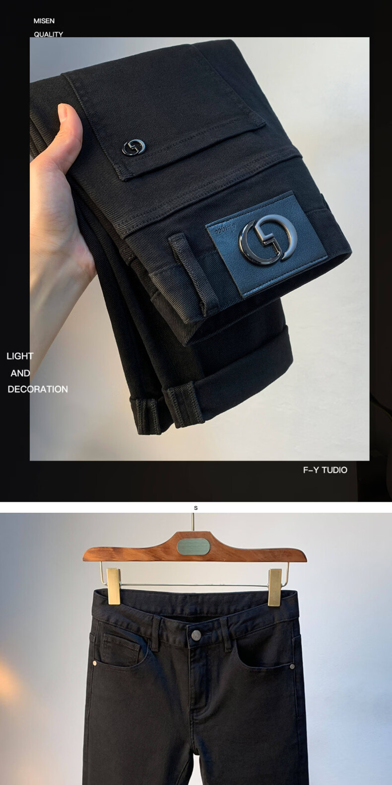 Playboy (PLAYBOY) high-end light luxury men's jeans winter new pure black slim-fit elastic pints European station casual trousers black 32 recommended 135-145Jin Jin equals 0.5 kg