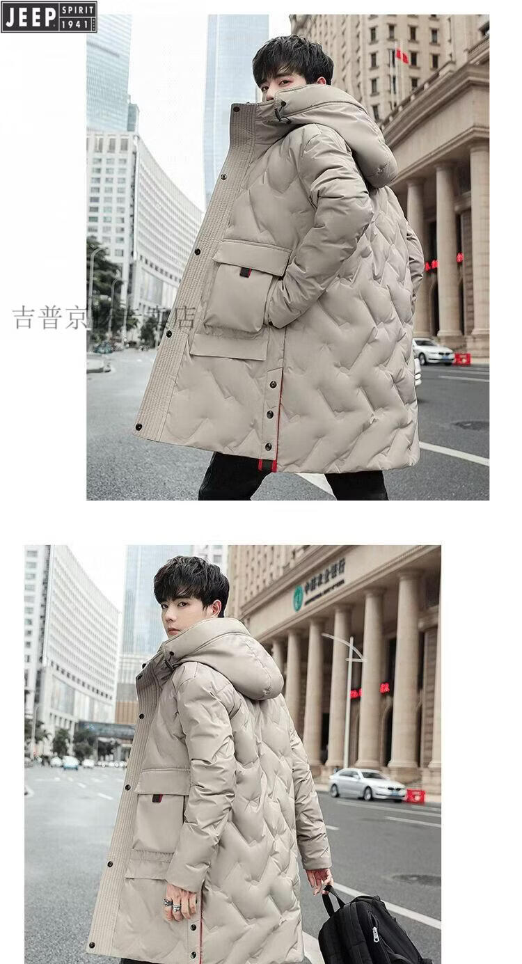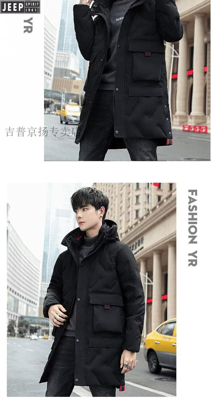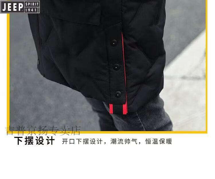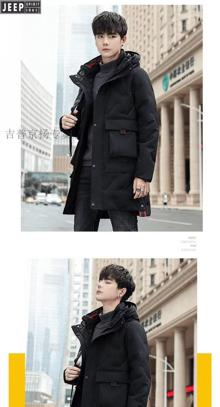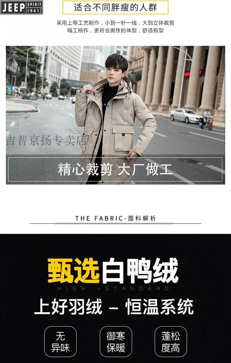 JEEP Jeep International Brand Мужская пуховик средней длины, новинка 2025 года, зимняя утолщенная куртка с капюшоном большого размера, белая куртка на утином пуху, черная M 80-110Jin Jin равна 0,5 кг