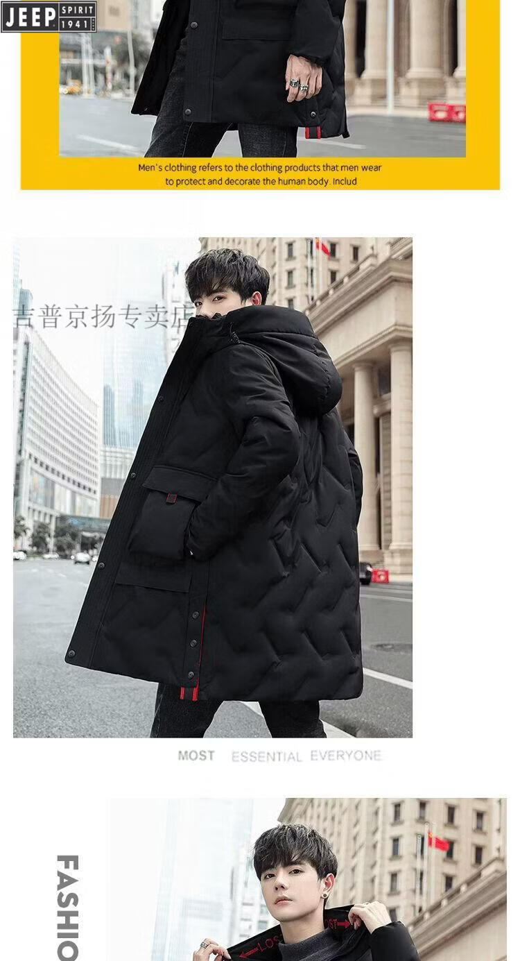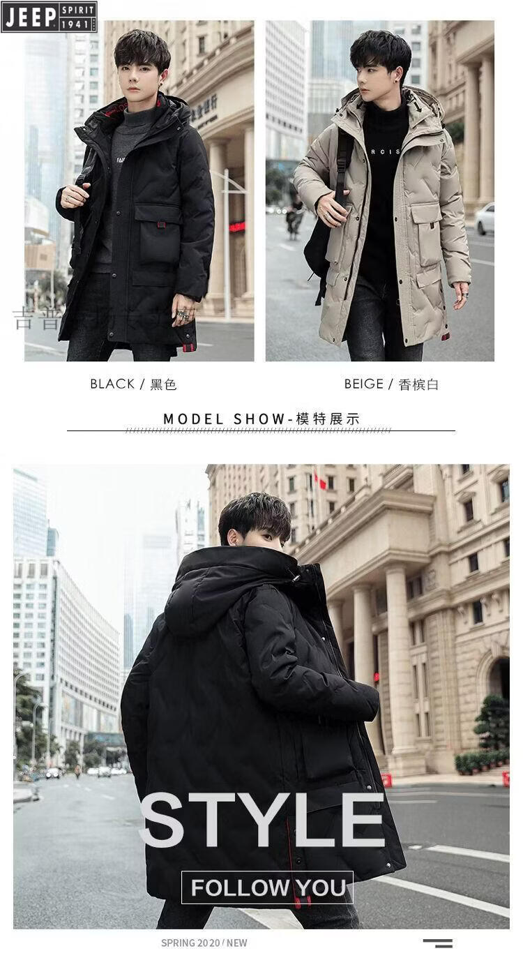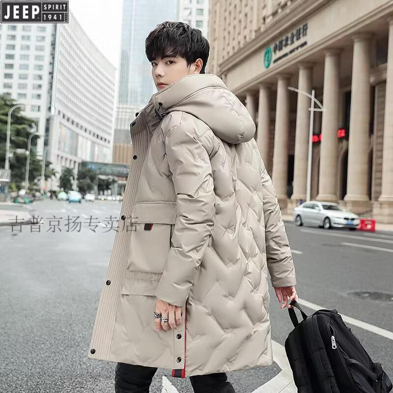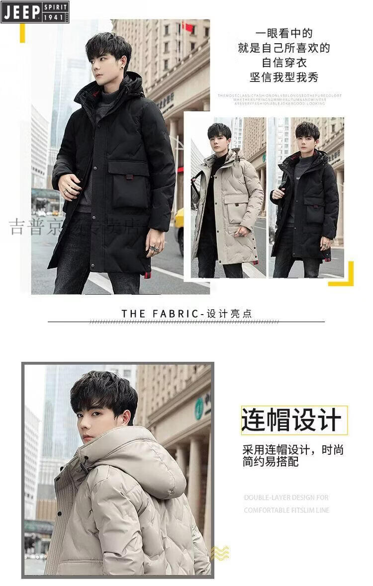 JEEP Jeep International Brand Мужская пуховик средней длины, новинка 2025 года, зимняя утолщенная куртка с капюшоном большого размера, белая куртка на утином пуху, черная M 80-110Jin Jin равна 0,5 кг