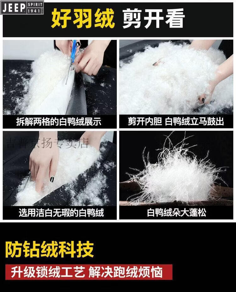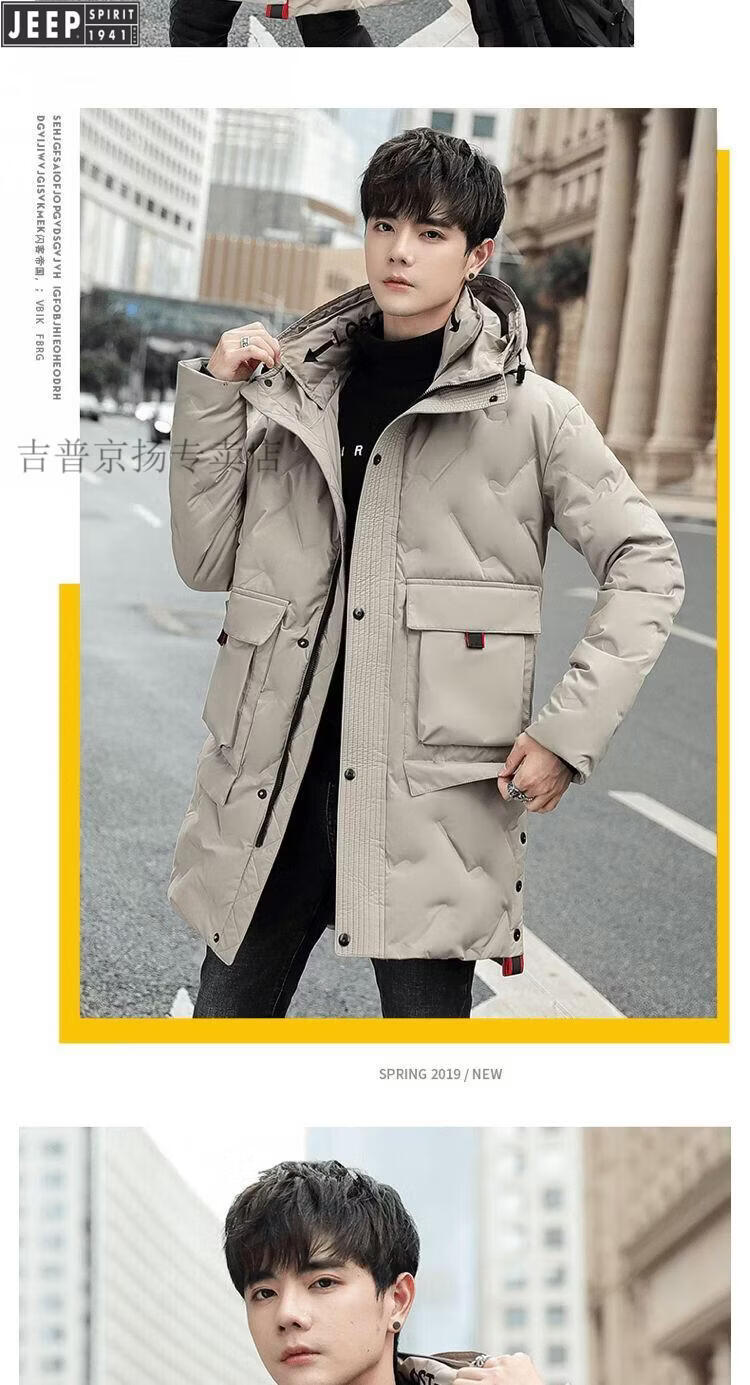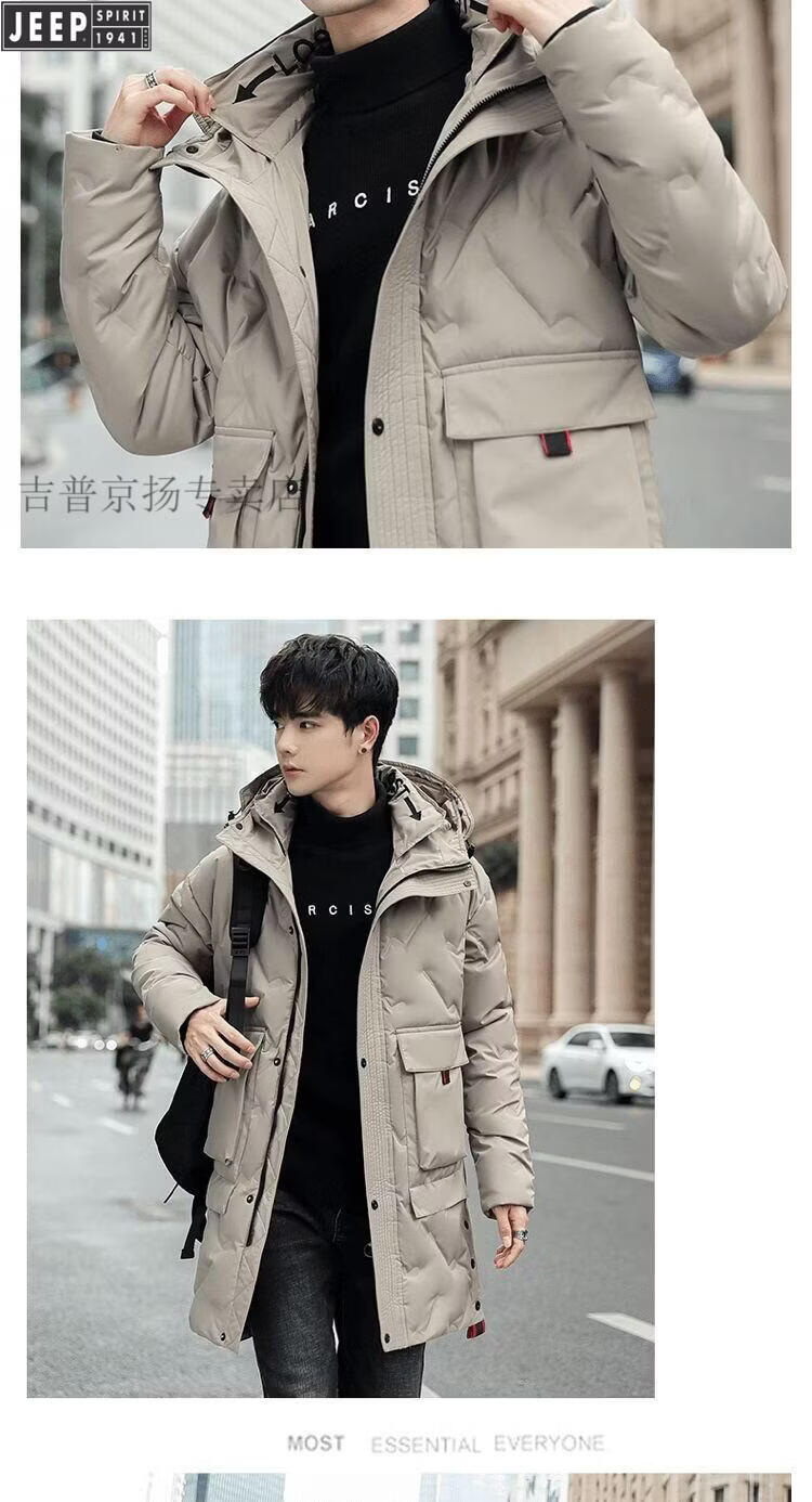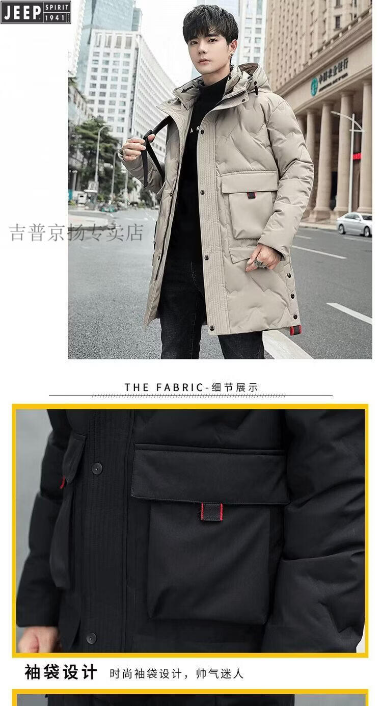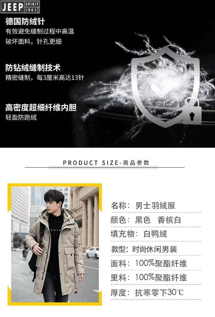 JEEP Jeep International Brand Мужская пуховик средней длины, новинка 2025 года, зимняя утолщенная куртка с капюшоном большого размера, белая куртка на утином пуху, черная M 80-110Jin Jin равна 0,5 кг
