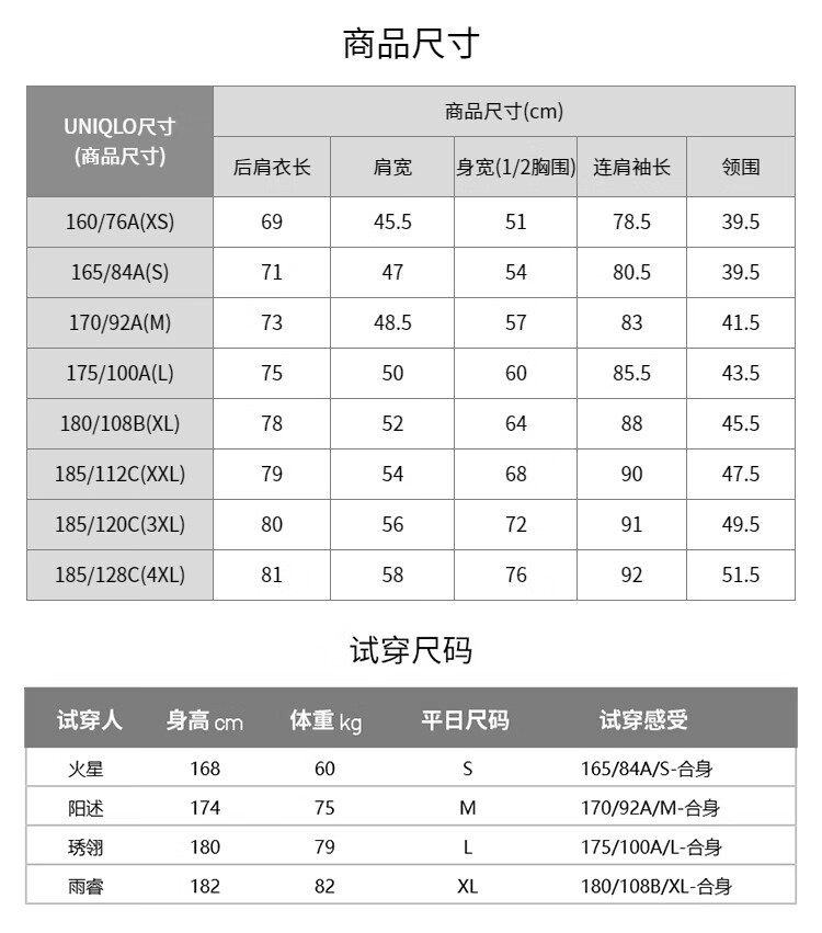 China (cm) 160-165/84-86 165-170 / 88-90 167-172 / 92-96 168-173 / 98-102 170-176 / 106-110