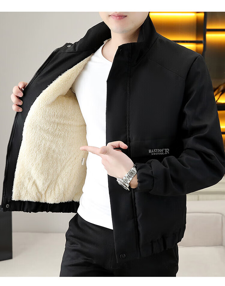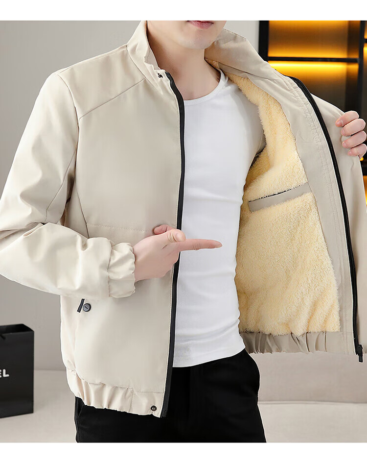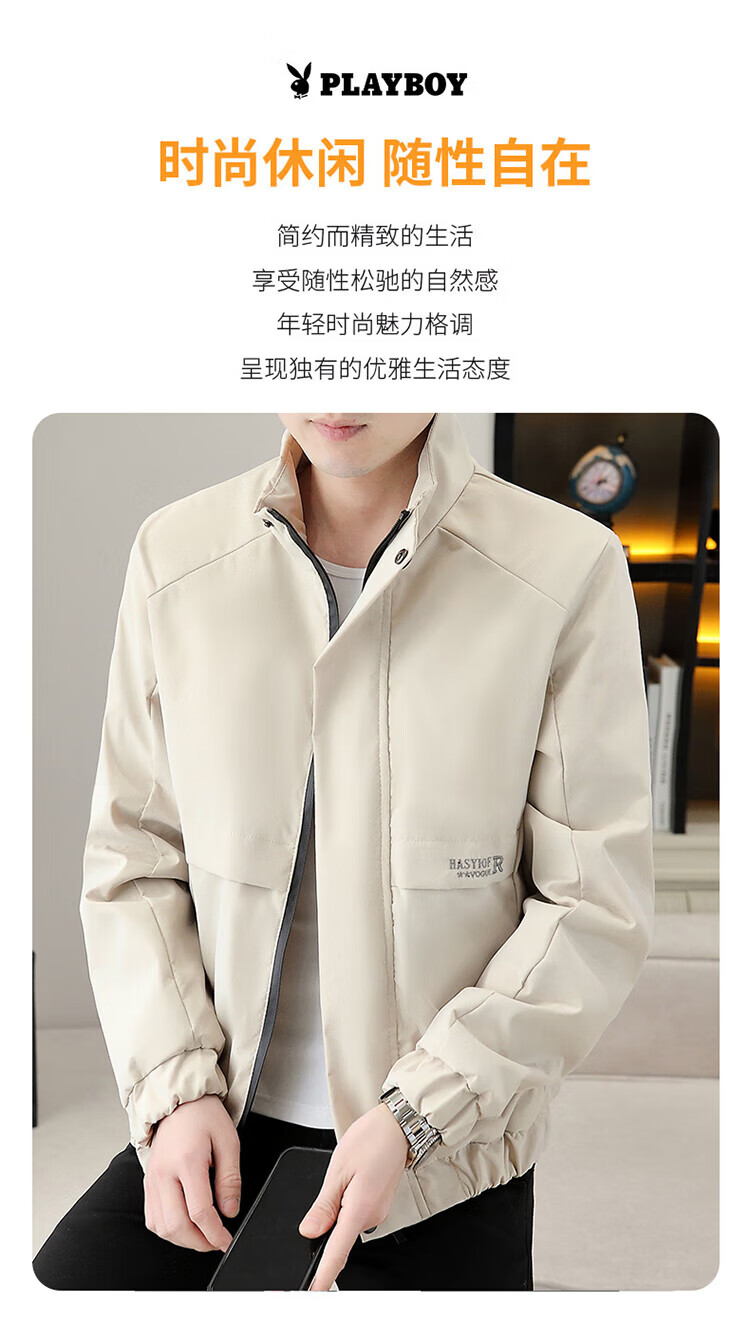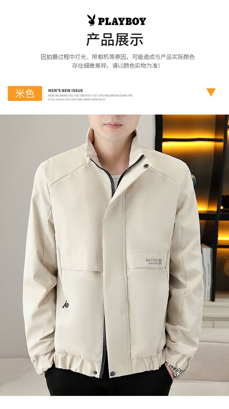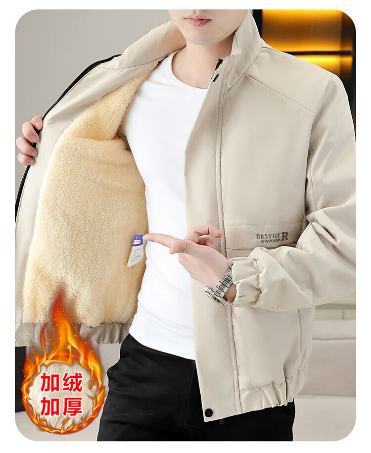 Playboy (PLAYBOY) Jacket Men's Velvet Thickened Jacket Men's Autumn and Winter Workwear Casual High-End Warm Cotton Clothes Beige Velvet XL Recommended 120-135Jin Jin equals 0.5 kg