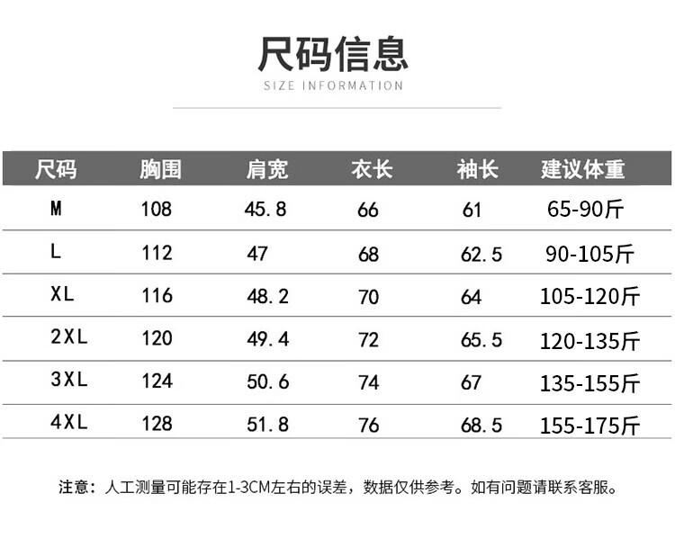 China (cm) 165 / 88-90 170 / 96-98 175 / 108-110 180 / 118-122 185 / 126-130