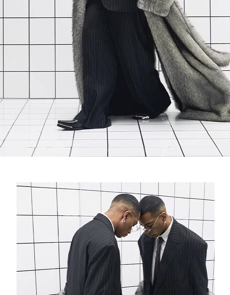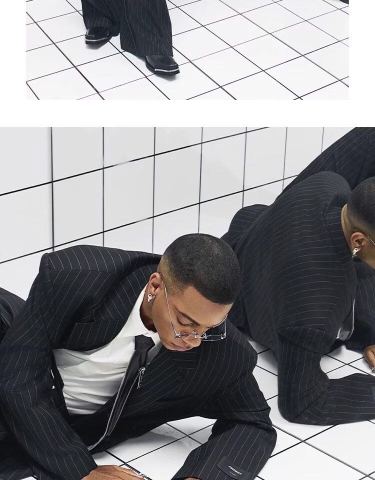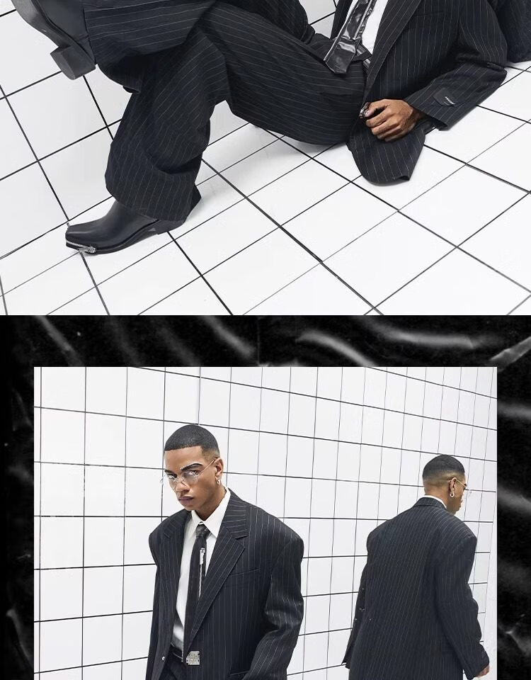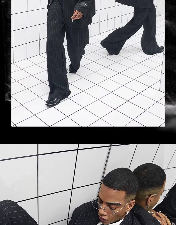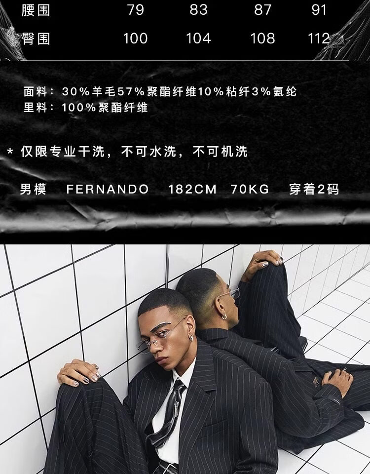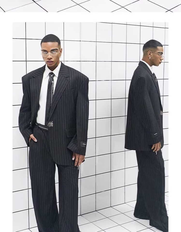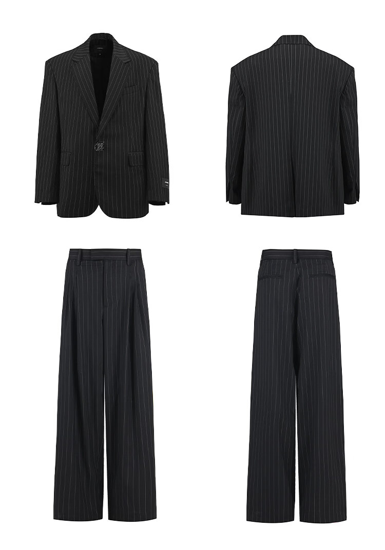 CHEVALPES国际一线品牌大廓形羊毛混纺条纹精裁西装套西套装全性别 西裤 XL 3码