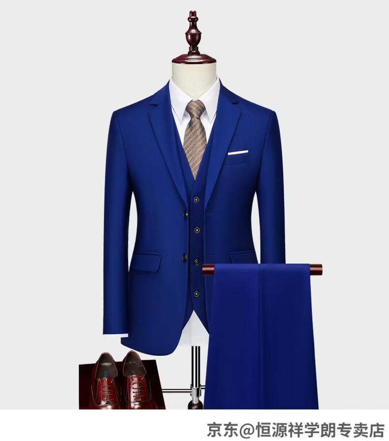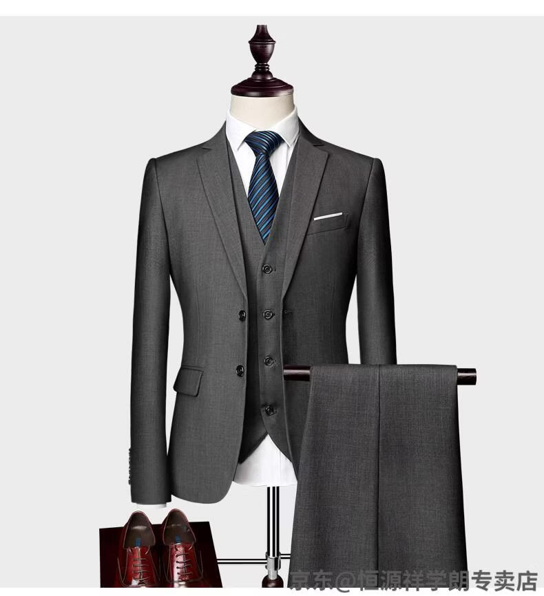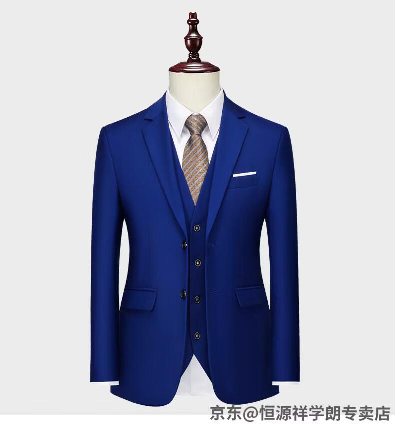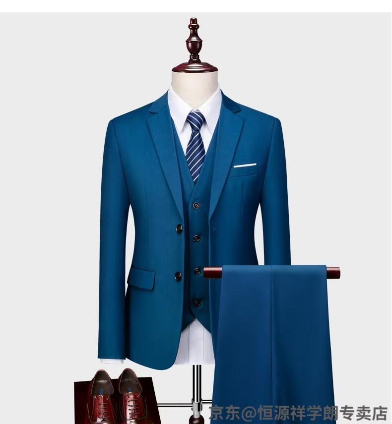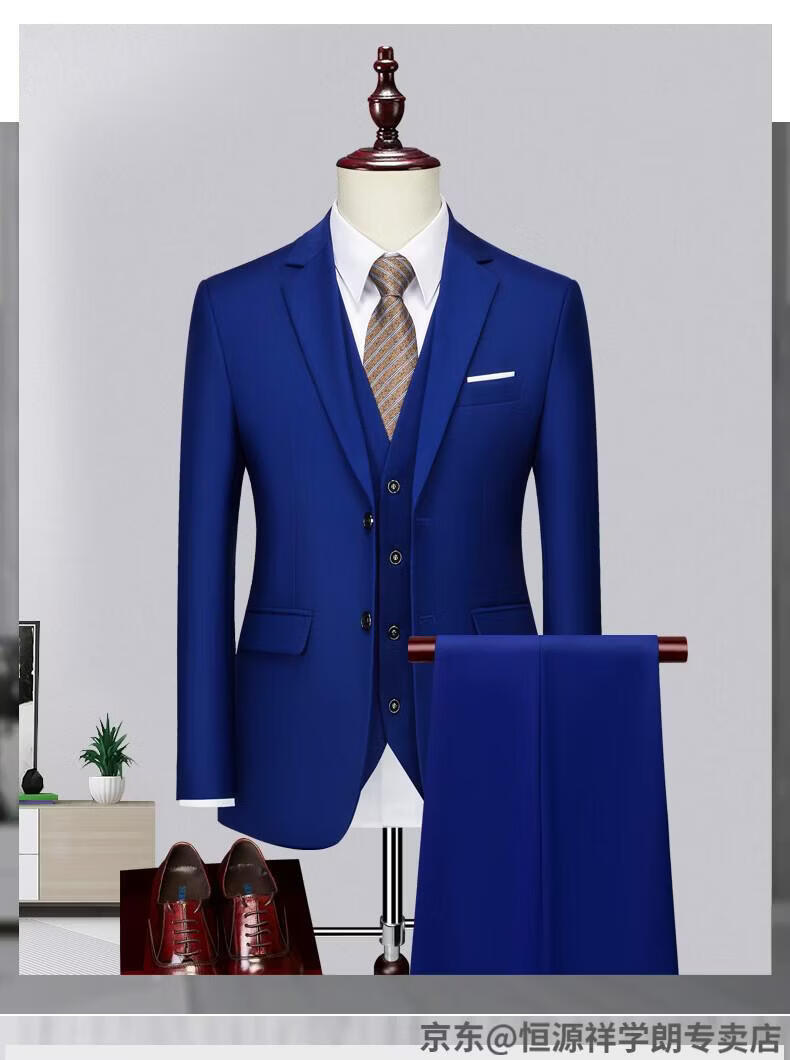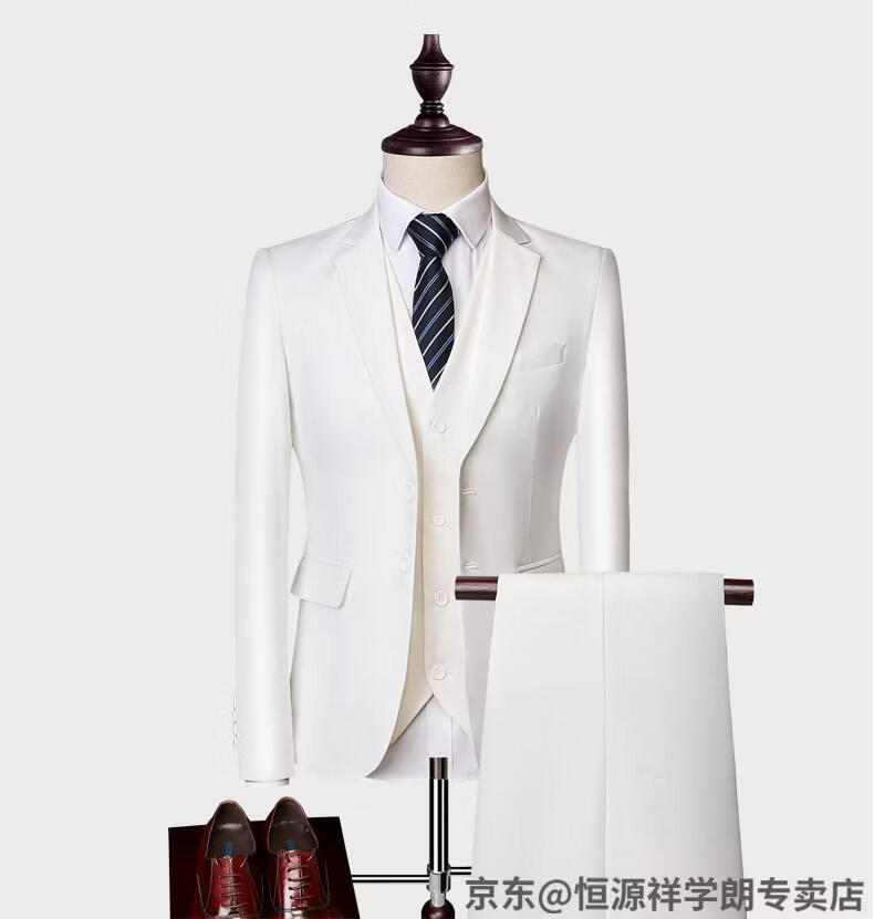 Hengyuanxiang white casual suit men's no-iron business formal wear Korean version slim two-button suit plus size jacket dark blue (suit + pants) 2XL recommended 130-145Jin Jin equals 0.5 kg