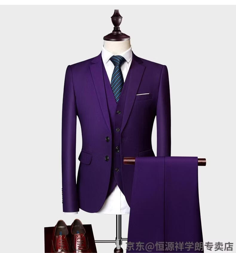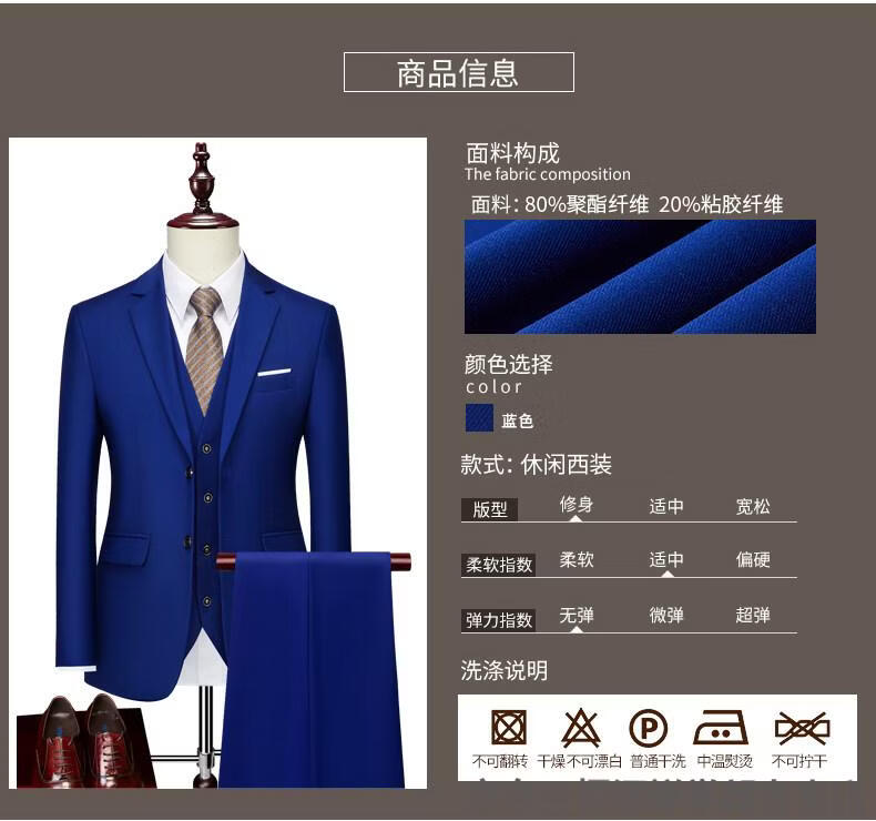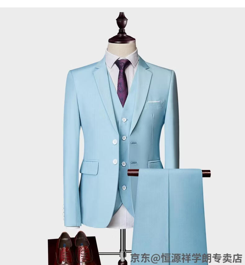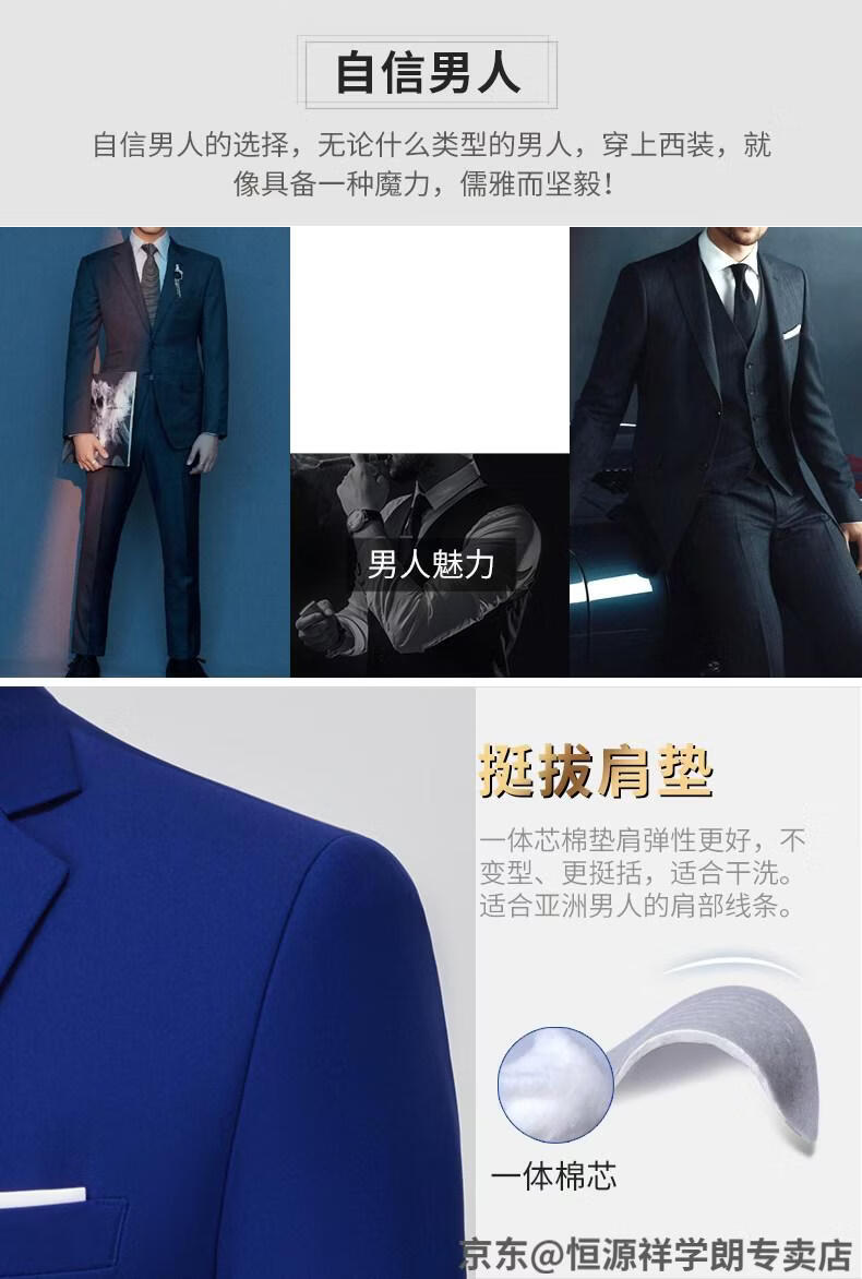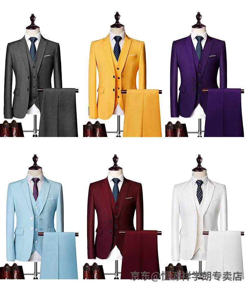 Hengyuanxiang white casual suit men's no-iron business formal wear Korean version slim two-button suit plus size jacket dark blue (suit + pants) 2XL recommended 130-145Jin Jin equals 0.5 kg