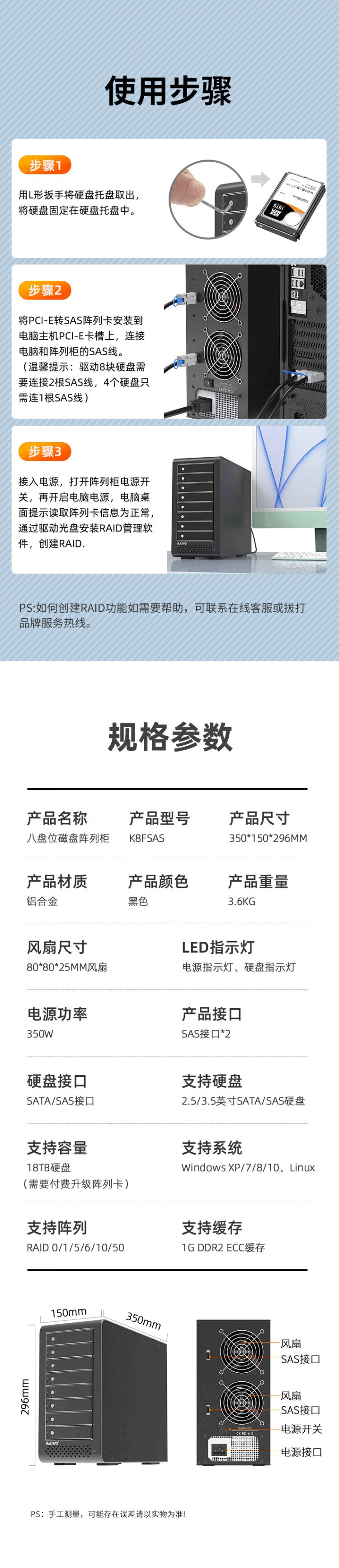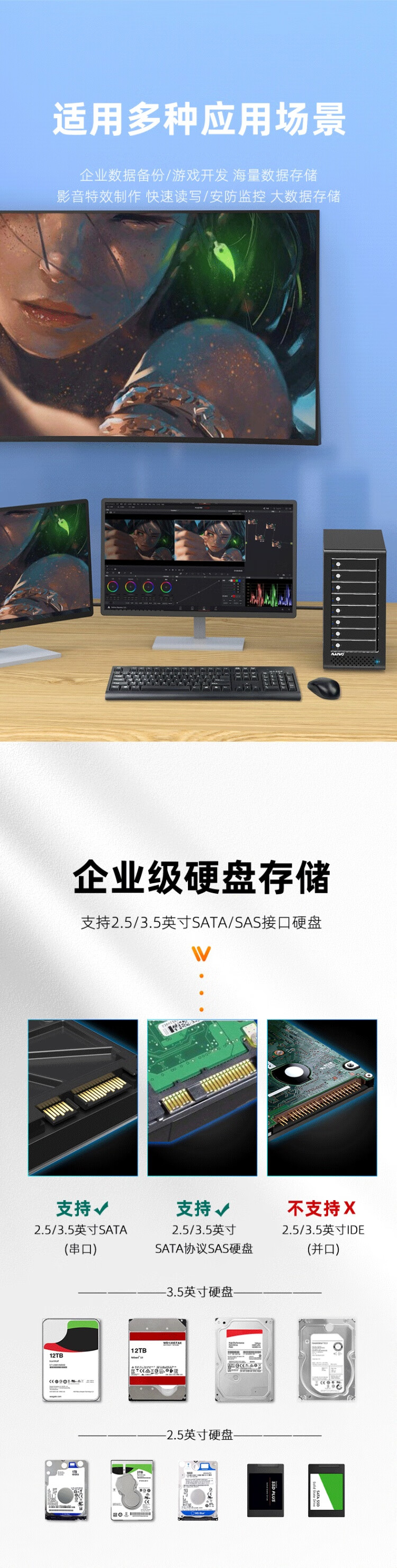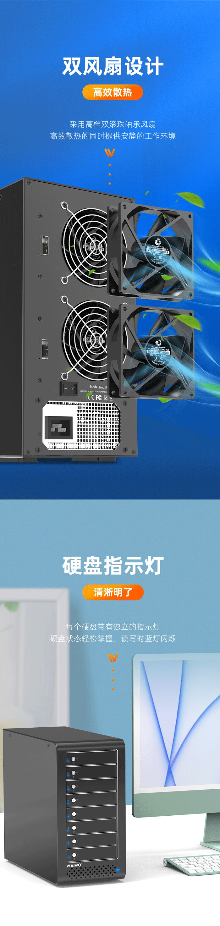 麦沃(MAIWO) K8FSAS 磁盘阵列柜 八盘位硬盘柜 支持SATA/SAS硬盘通用 4K高清视频数据硬盘盒 全铝黑
