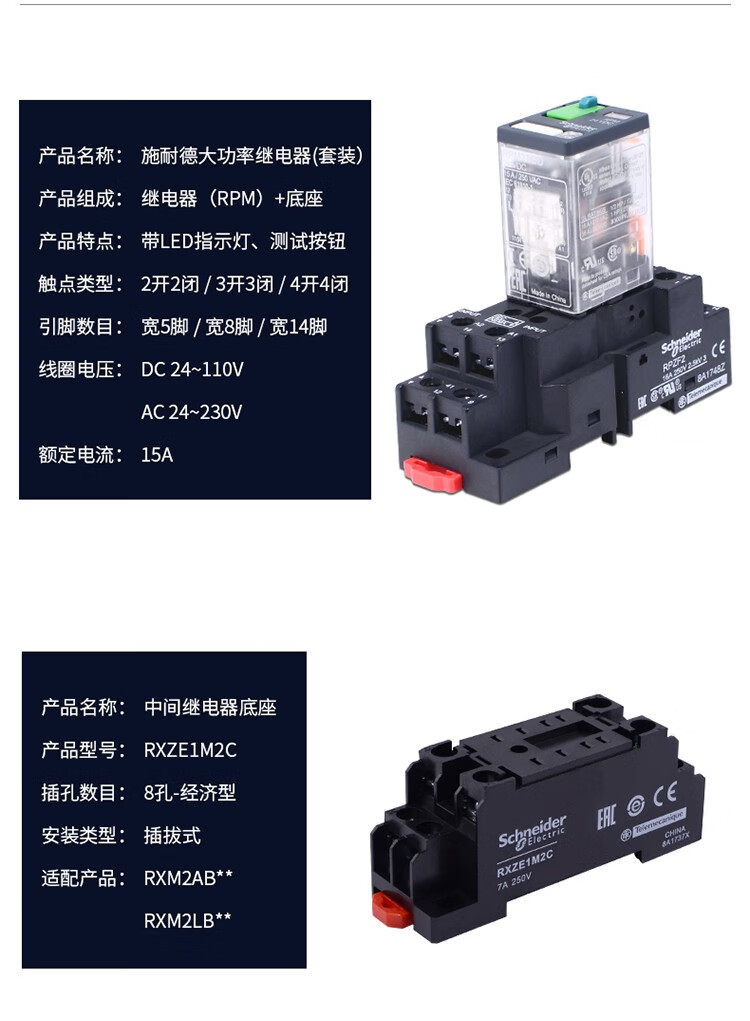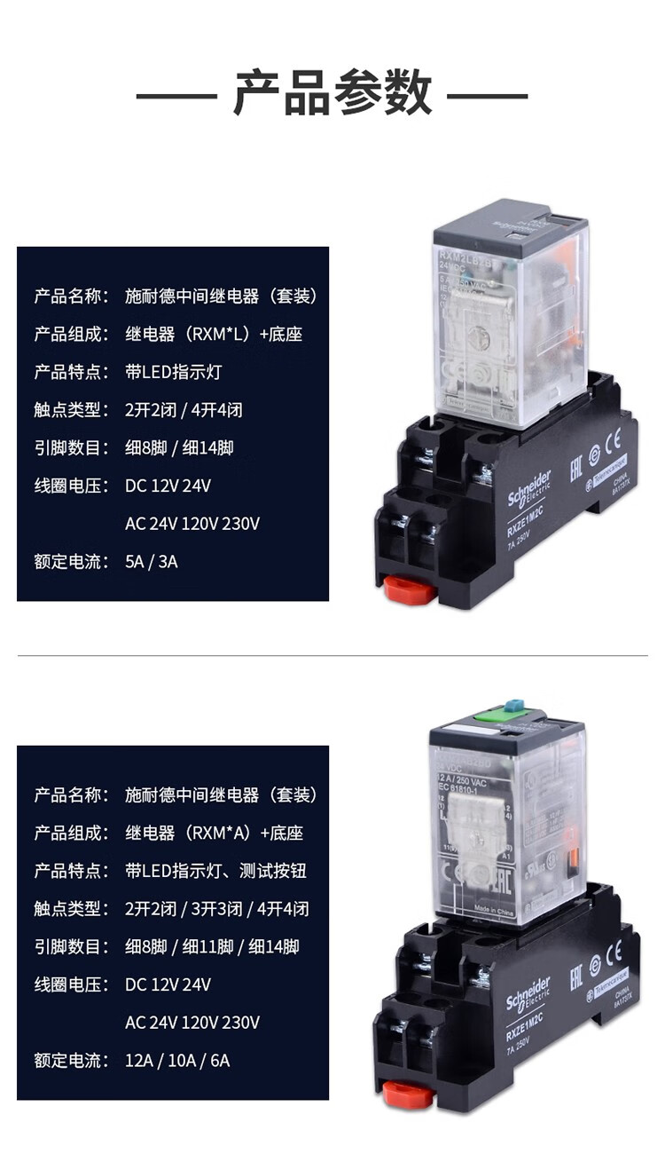 Schneider – contact de relais, bobine de relais intermédiaire enfichable, haute puissance, sélection multi-broches, jeu de relais à 8 broches, bobine DC24V 5A