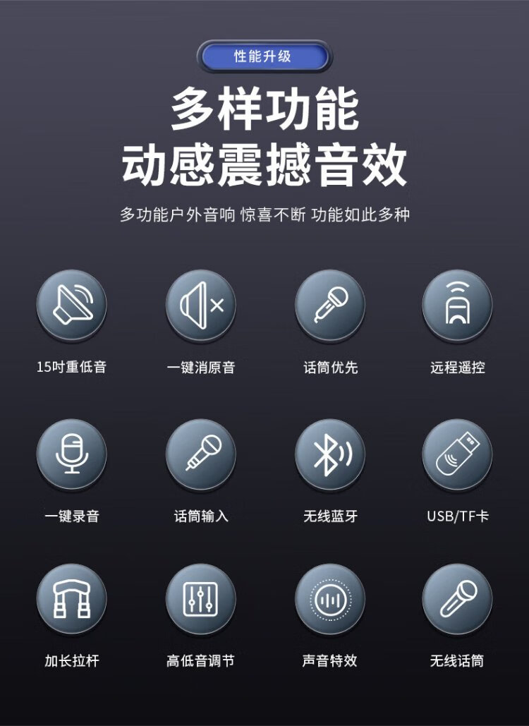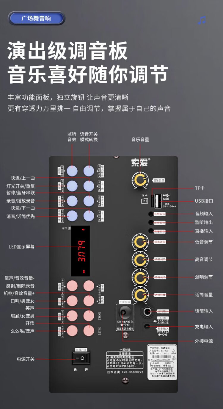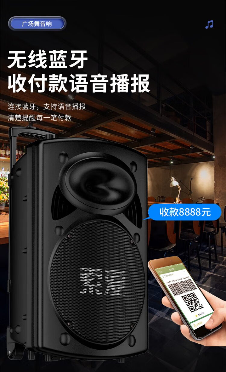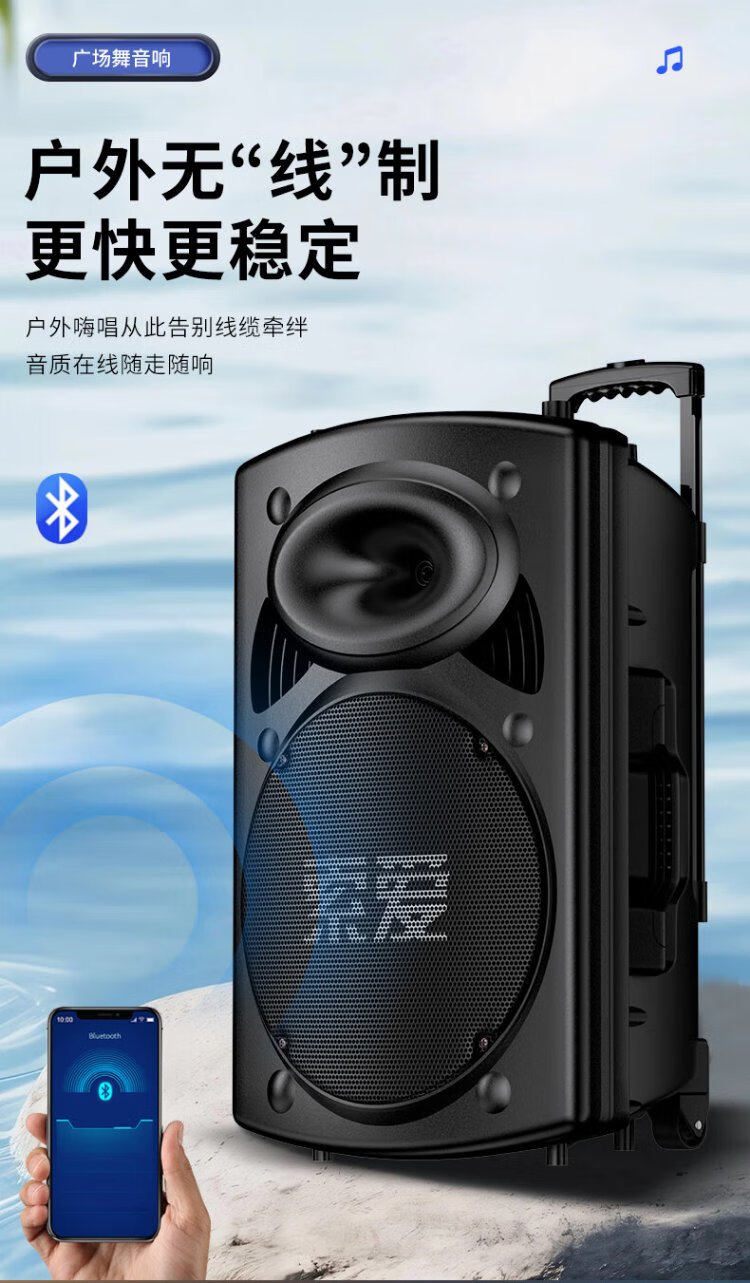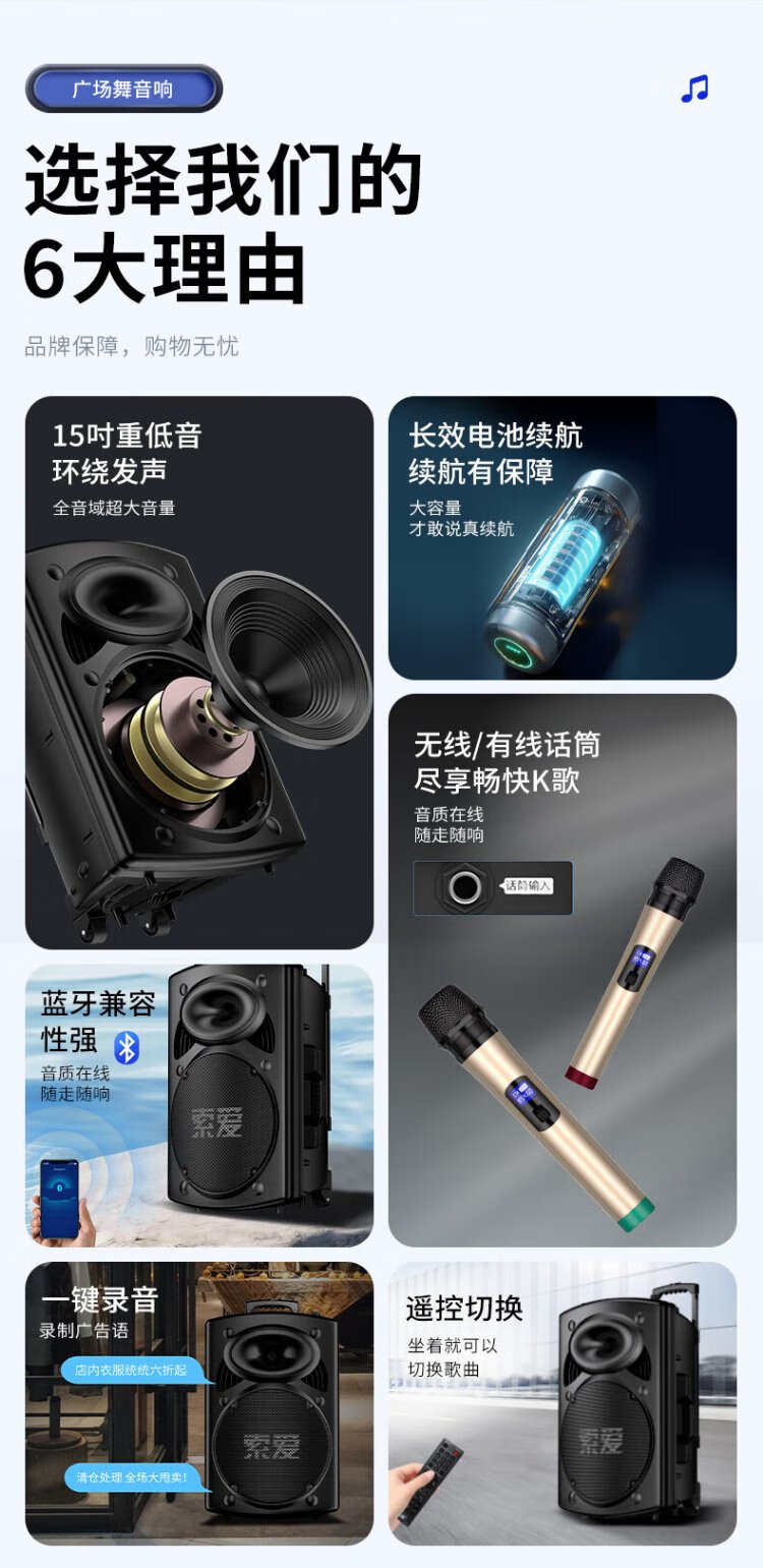 索爱(soaiy)15吋广场舞音响大功率便携式户外重低音蓝牙k歌大音量移动拉杆音箱室外演出设备双话筒A90