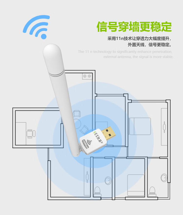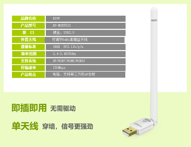 Yilian (EDUP) USB wireless network card 150M driver-free wifi receiver desktop laptop host universal 6dbi gain antenna intelligent automatic installation EP-8552S