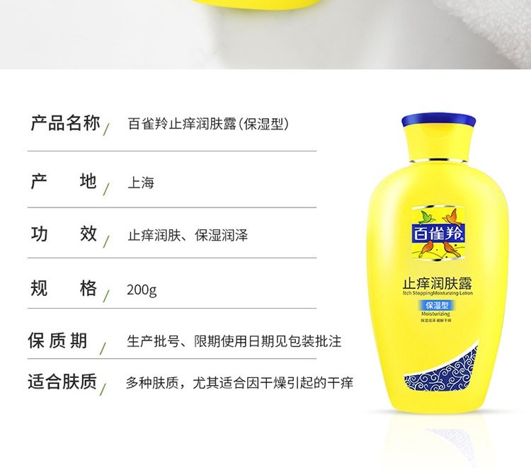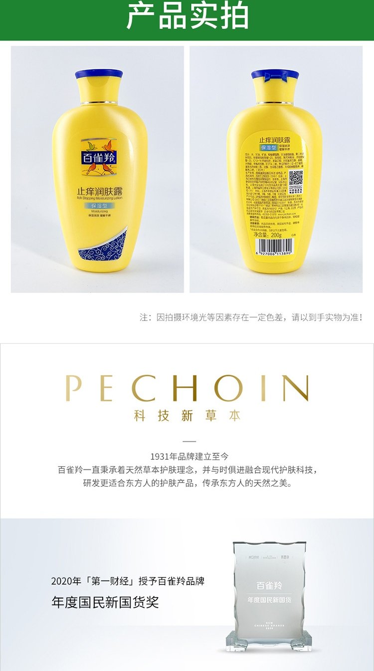 百雀羚(PECHOIN)止痒润肤露200g润泽补水保湿温和润肤品质国货送女友