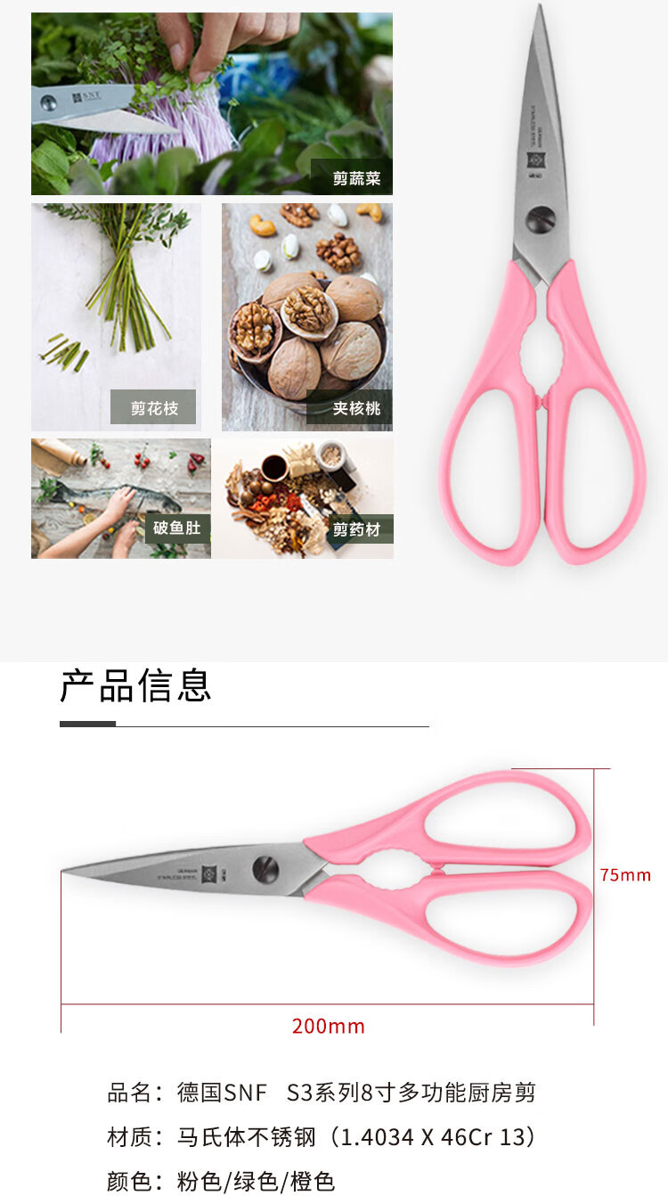 Alemán Schneider SNF S3 colorido acero inoxidable hogar tijeras de cocina multifuncionales tijeras para el hogar tijeras para verduras polvo de melocotón
