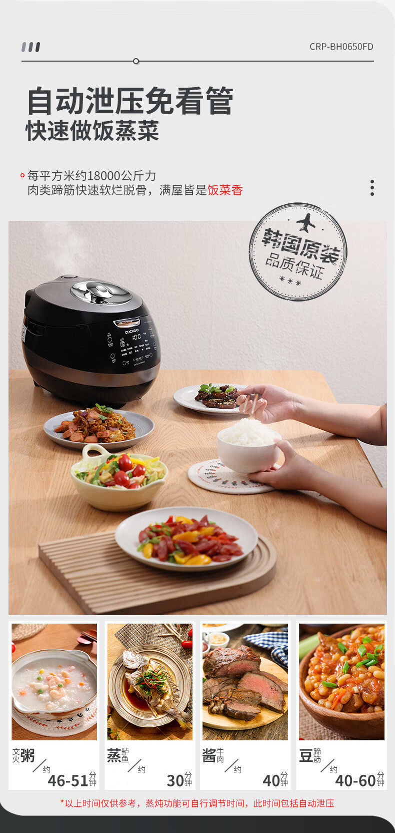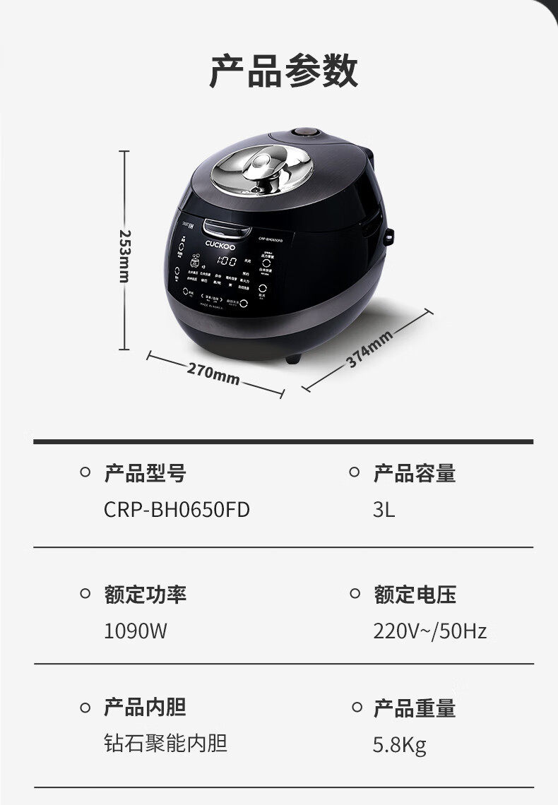 福库(CUCKOO)3L容量电饭煲CRP-BH0650FD电饭锅多功能高压电饭煲