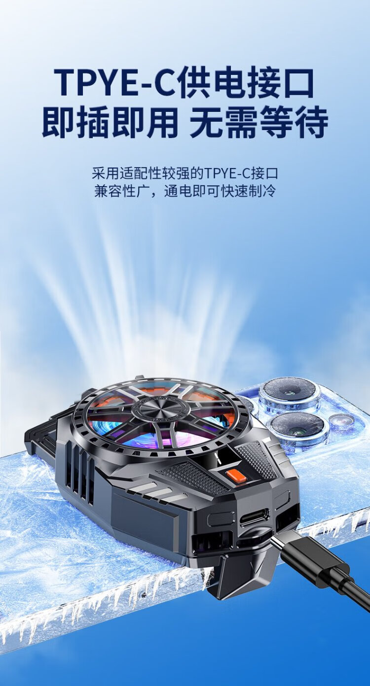 Bkayp mobile phone radiator back clip semiconductor refrigeration three-speed digital display air-cooled live broadcast e-sports game special cooling artifact suitable for Apple 17 Xiaomi Huawei Black Shark Red Magic iqoo