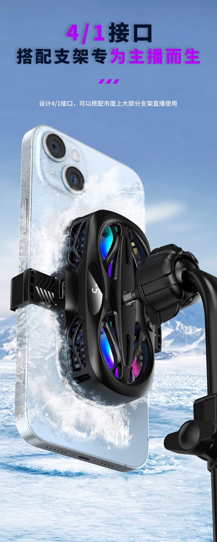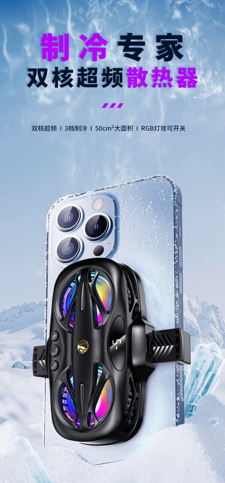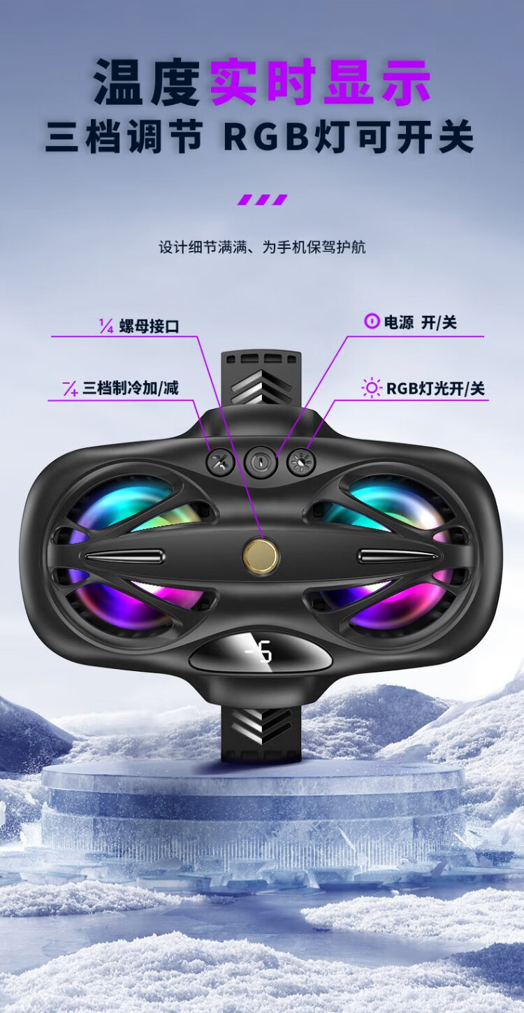 Qise Exclusive for eSports Mobile Phone Radiator Semiconductor Refrigeration Live Broadcast Cooling King of Glory Chicken Eating Artifact Suitable for IQOO Apple Xiaomi Huawei Red Magic Ice Back Clip Knight Black ESports Upgrade Model Second Speed ​​Cooling Intelligent Digital Display