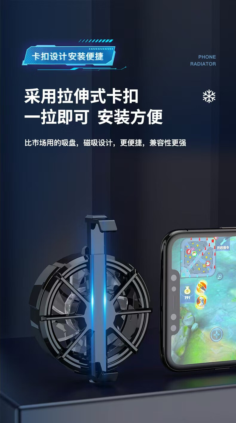 Upgraded e-sports model, mobile phone radiator, mobile phone holder, large fan cooling, ice cooling artifact back clip, suitable for live broadcast of Genshin Impact, Black Shark, Xiaomi, Huawei, Apple, lantern model, transparent