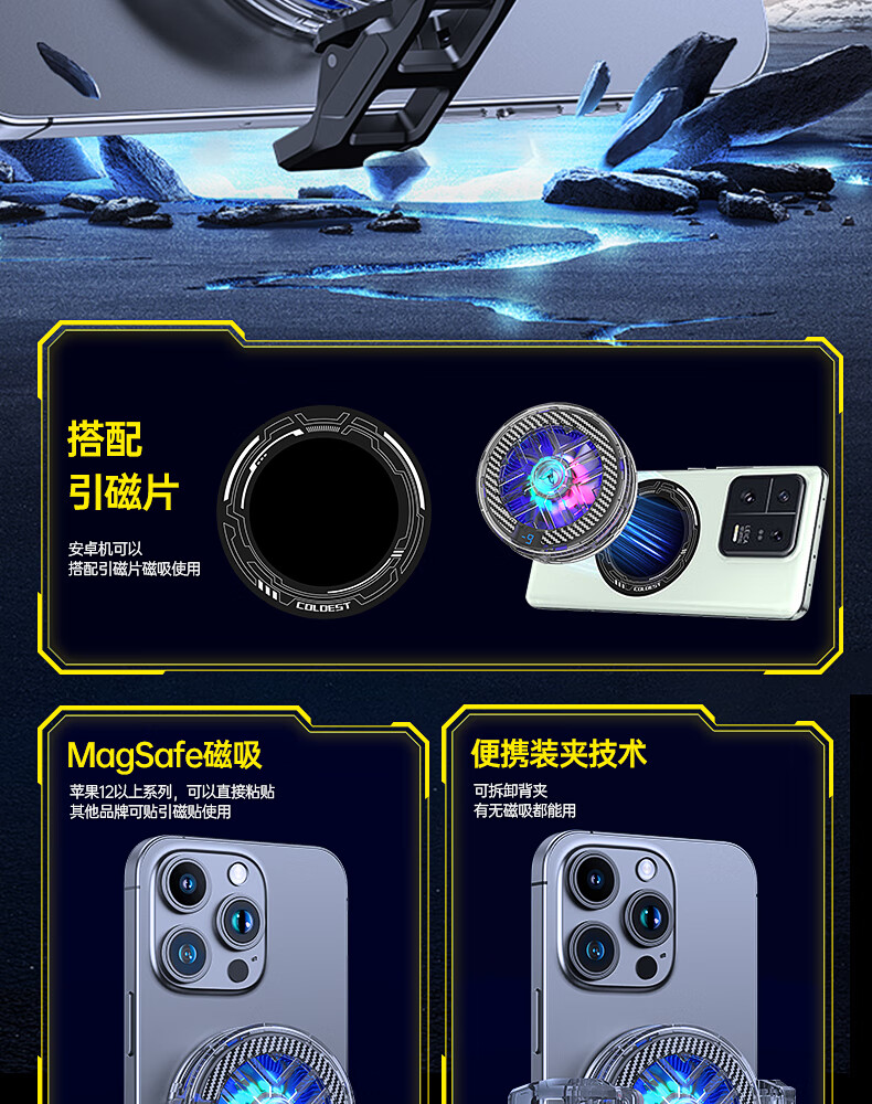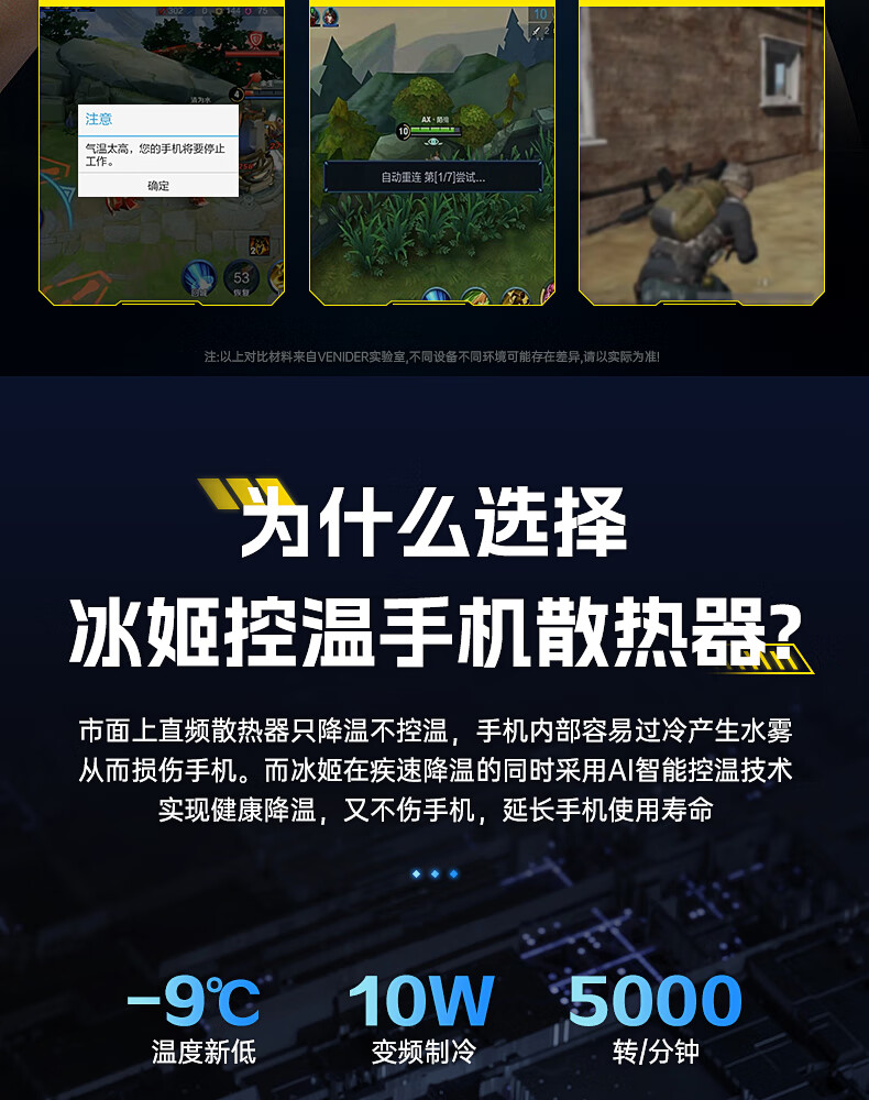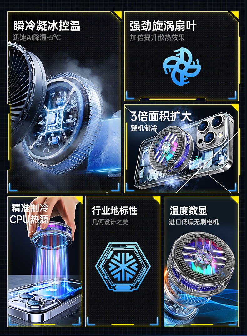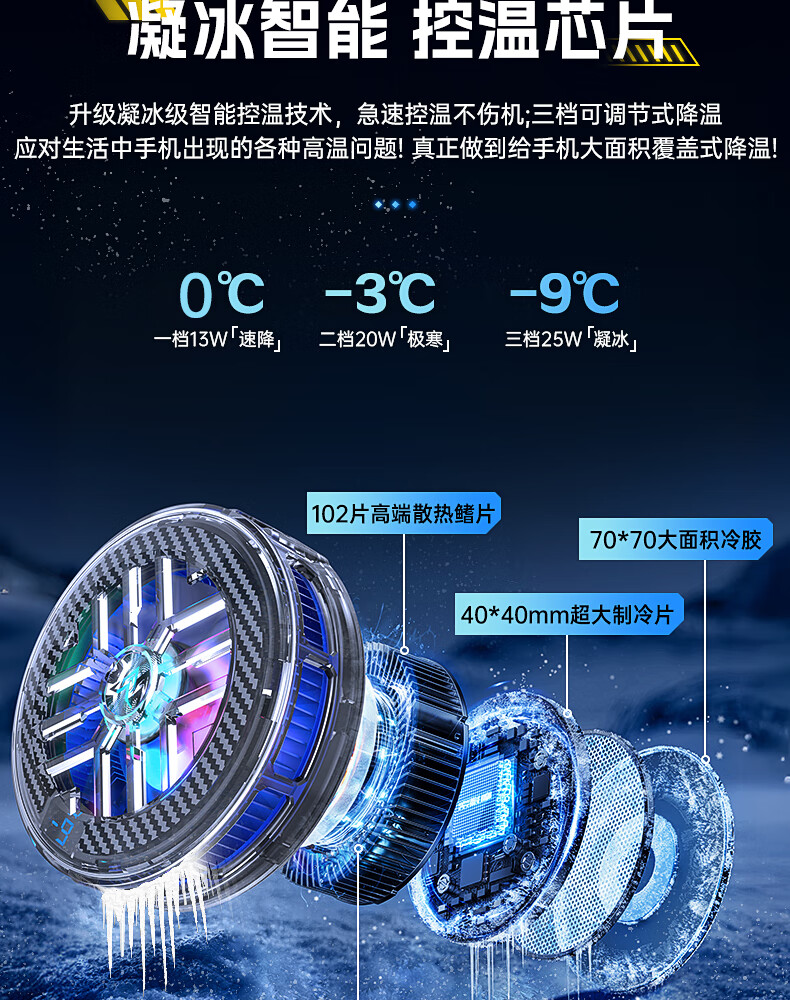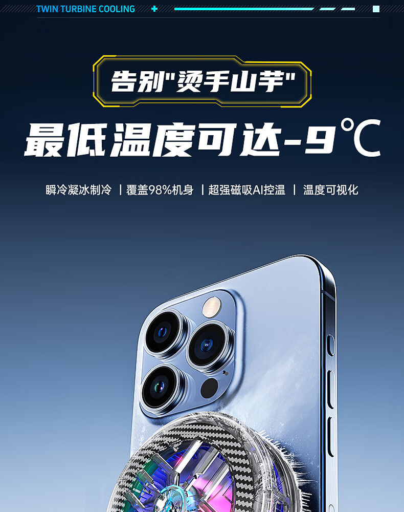 VENIDER【AI控温可结冰】手机散热器降温磁吸背夹式平板打游戏专用直播半导体制冷适用苹果iqoo华硕小米