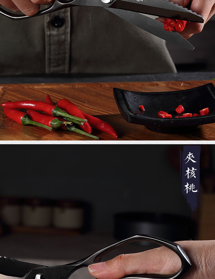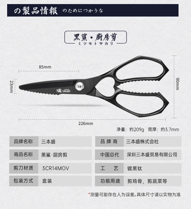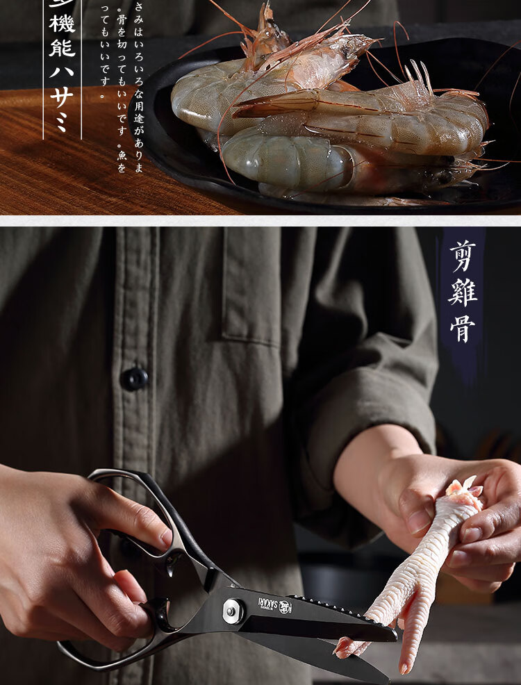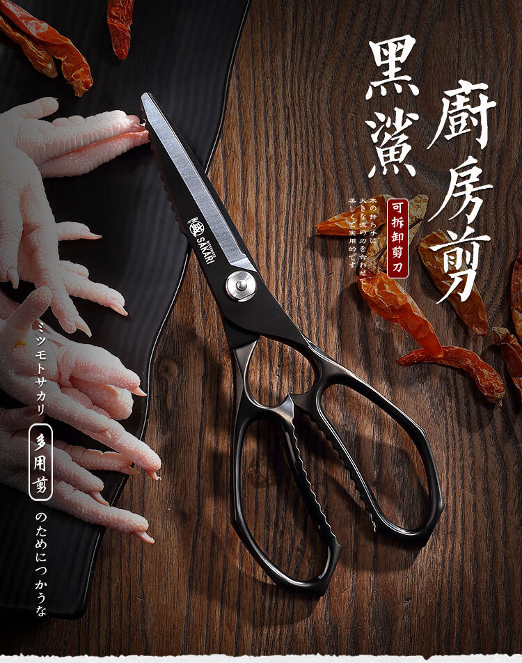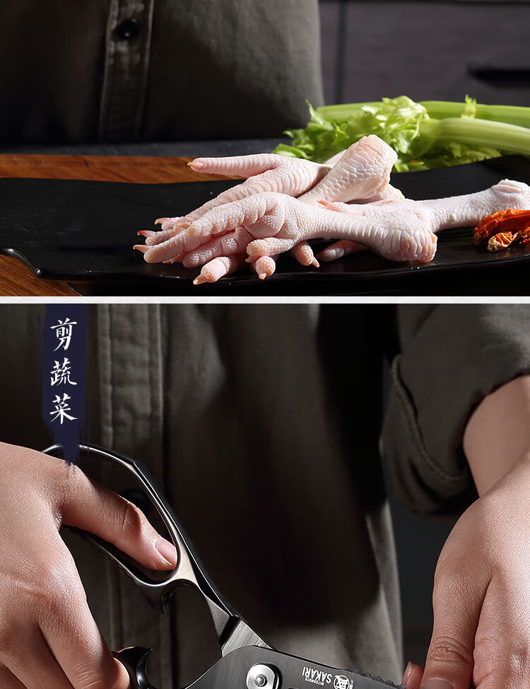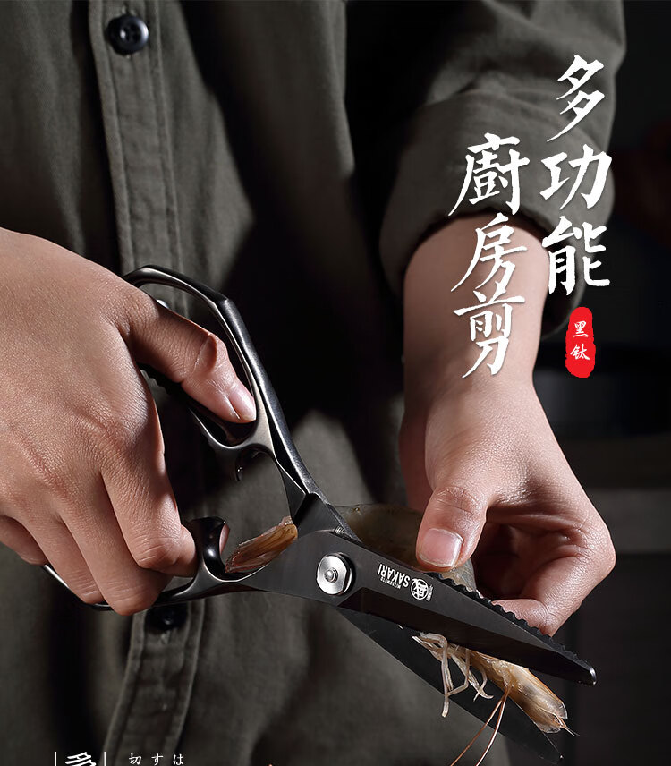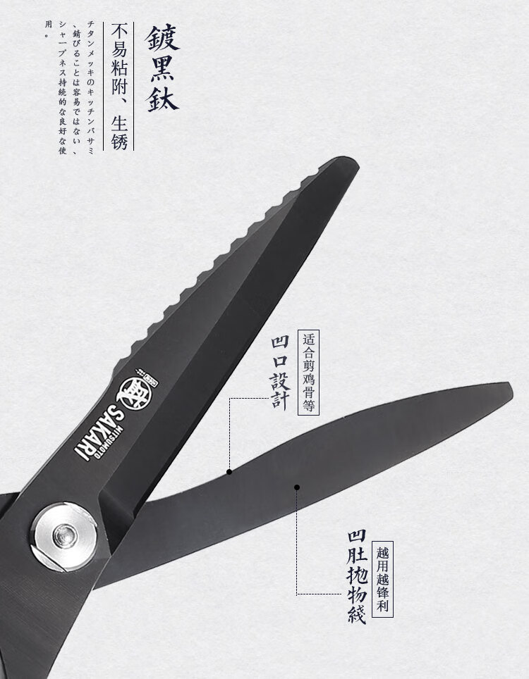 Sanbonsheng Tijeras de cocina japonesas, tijeras para huesos de pollo de acero inoxidable para el hogar, tijeras grandes importadas de acero, tijeras especiales multifuncionales potentes, tijeras totalmente de acero, tijeras de cocina para el hogar, chapadas en titanio