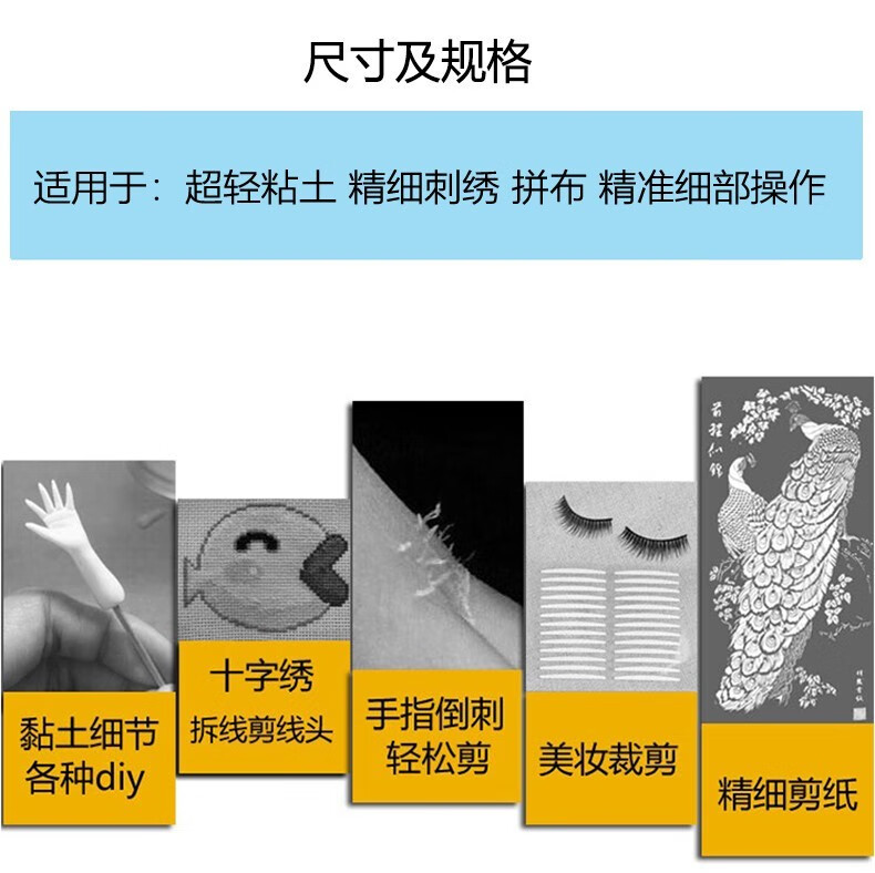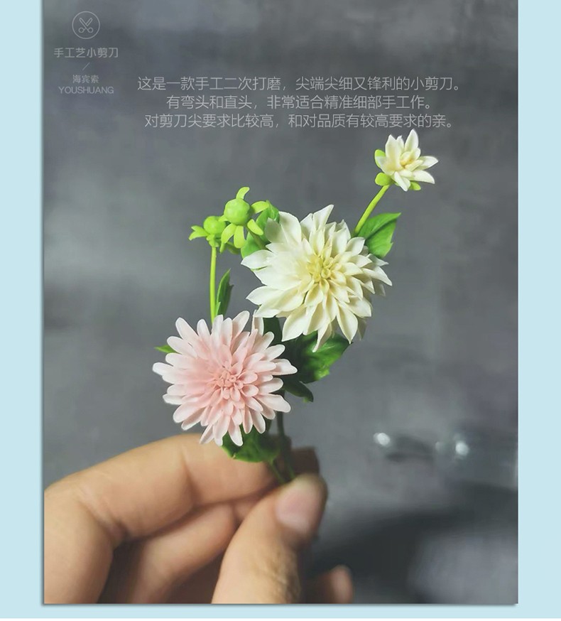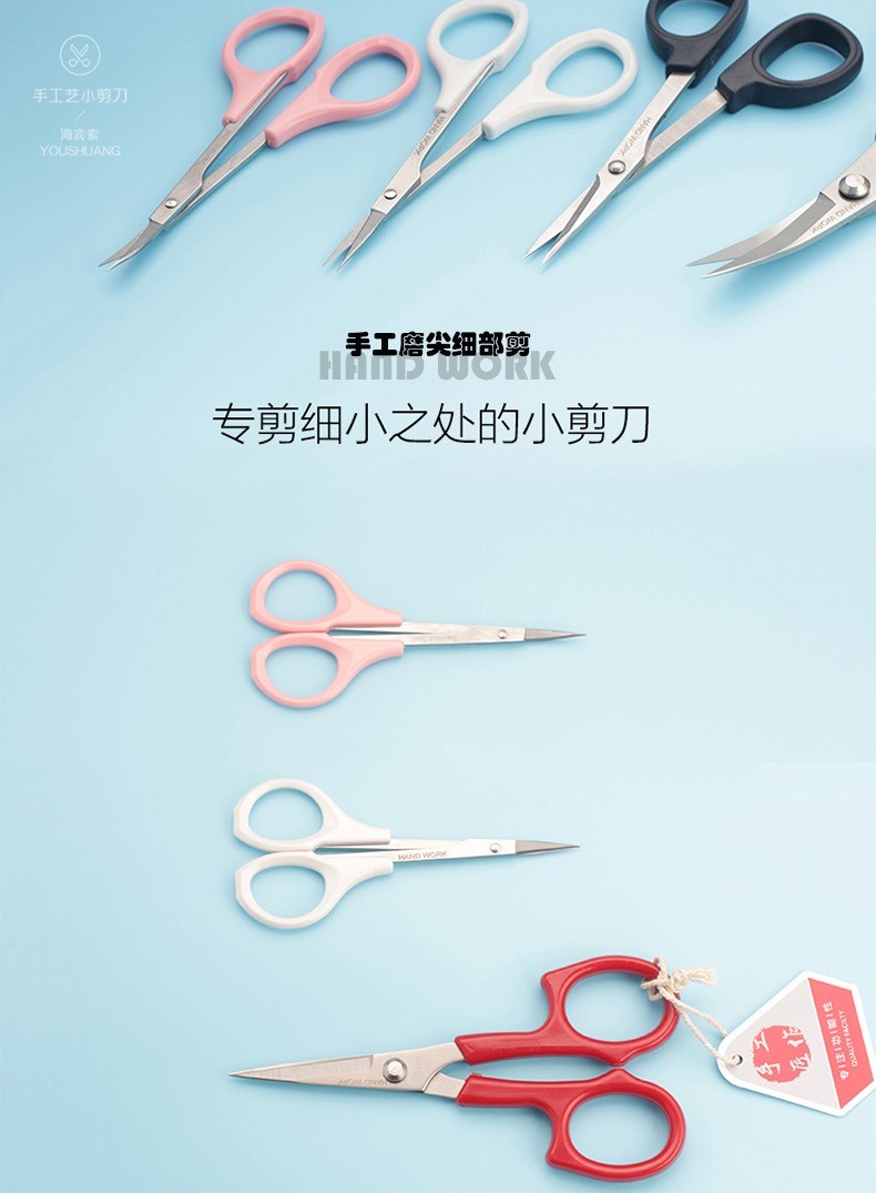 Small scissors with tilted tip and sharp tips, ultra-light clay extra-fine scissors, hand-made DIY patchwork sewing, embroidery and seam removal, high-quality straight elbow trimming tip scissors M861 white handle, straight head detail scissors, hand sharpened 9.5CM