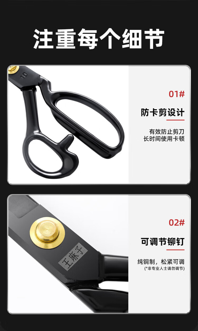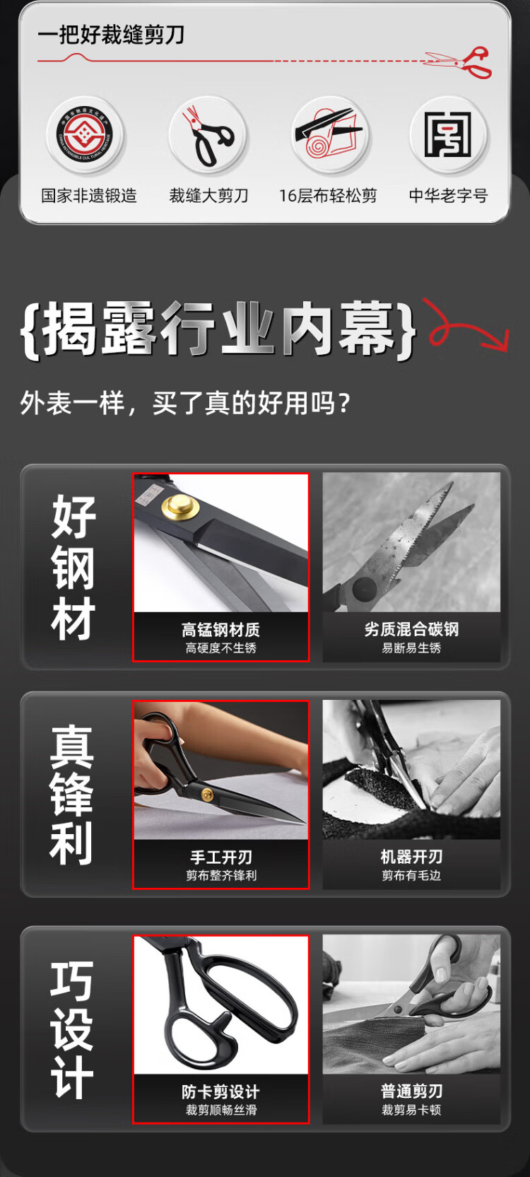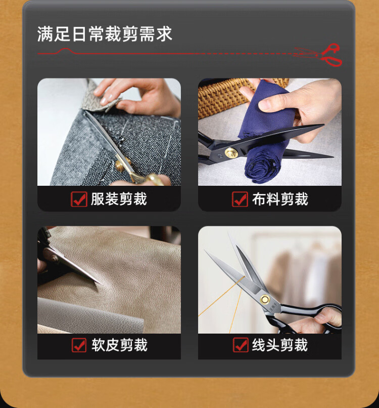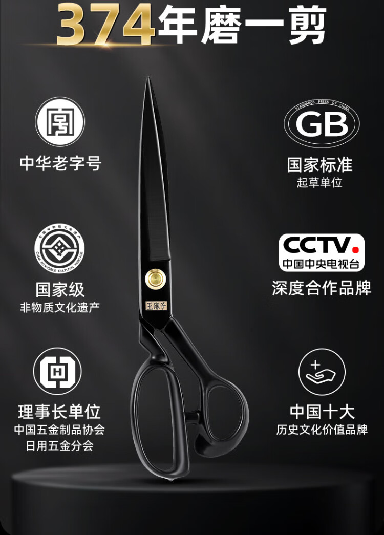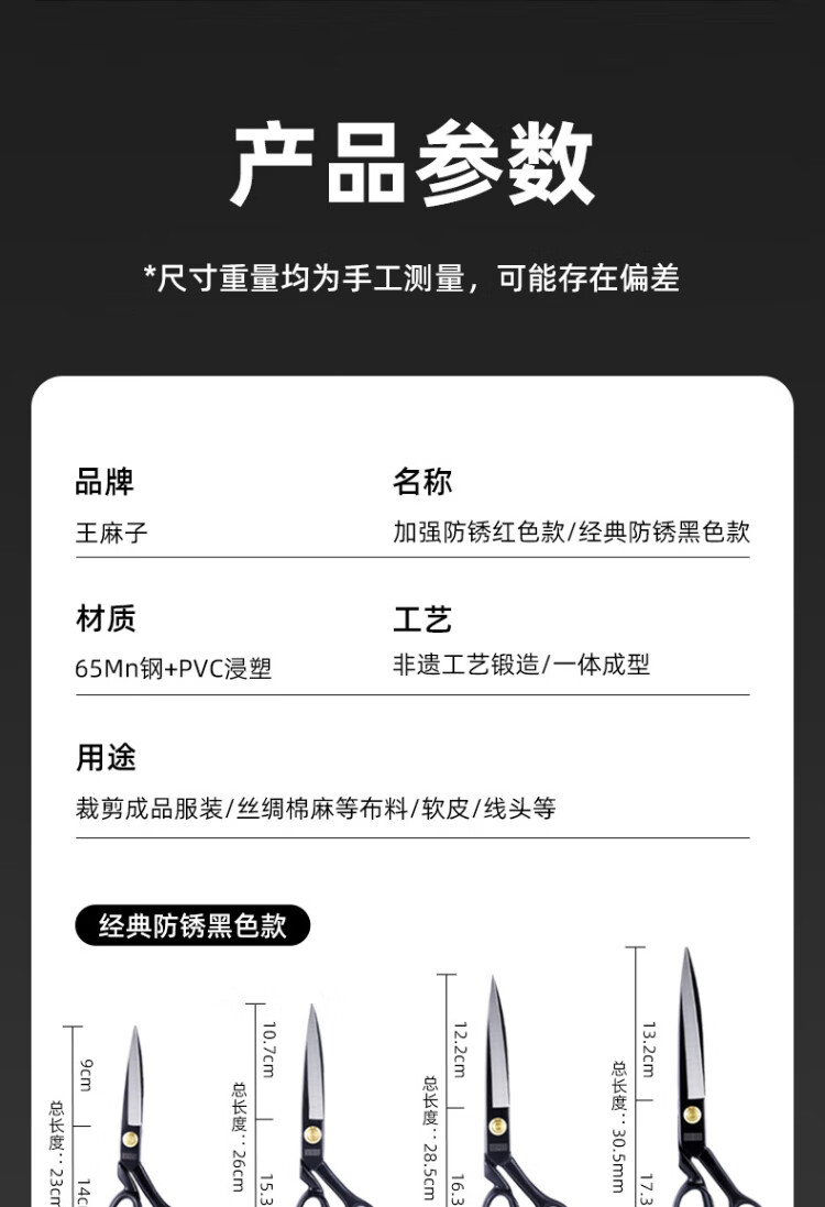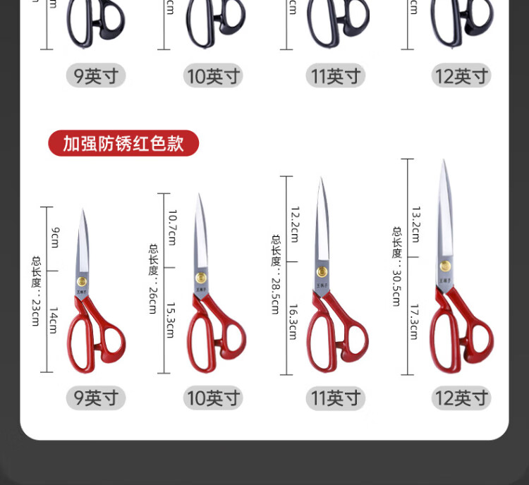 王麻子剪刀裁缝剪 裁缝专用裁剪布料工业大剪刀缝纫剪子 红色加强防锈【9英寸】
