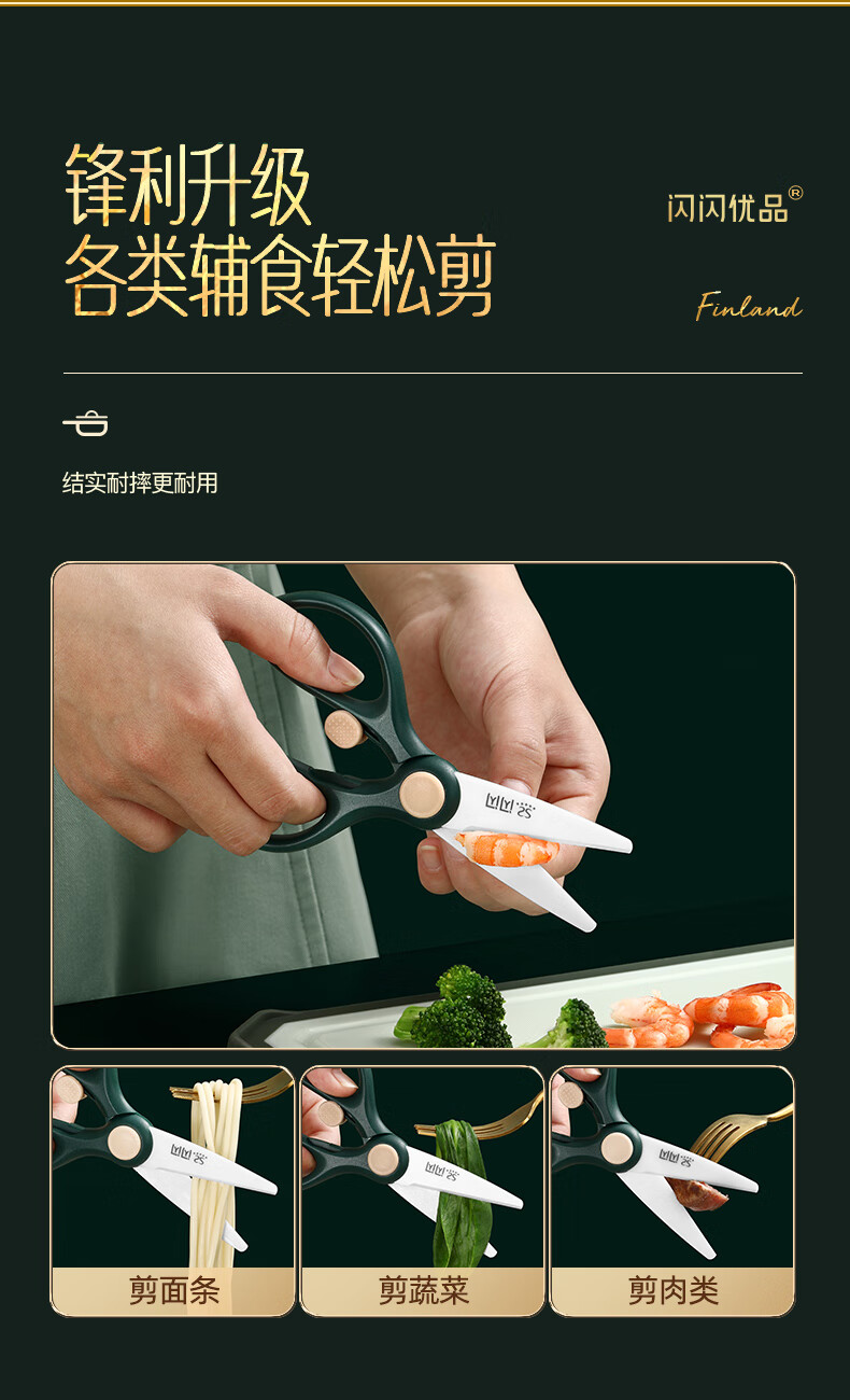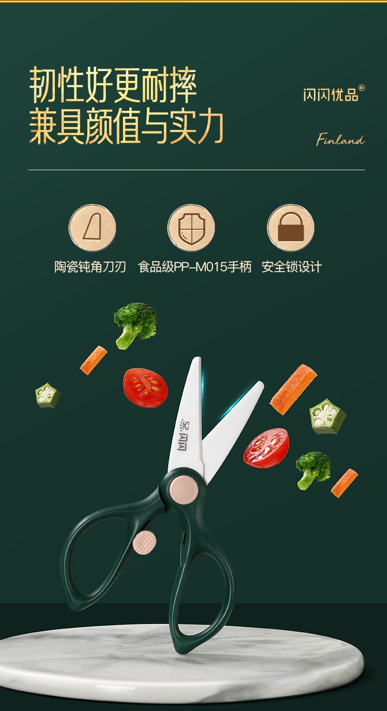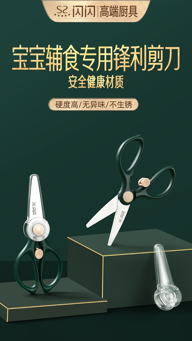 Tijeras de cocina brillantes de alta calidad, tijeras para comida para bebés, tijeras de cerámica, tijeras para comida para niños, herramientas especiales para bebés, tijeras de cerámica portátiles con caja de almacenamiento, no dañan las manos