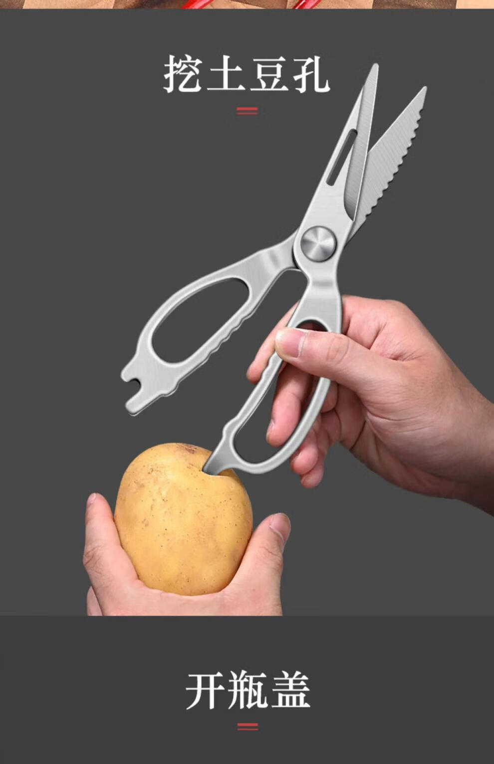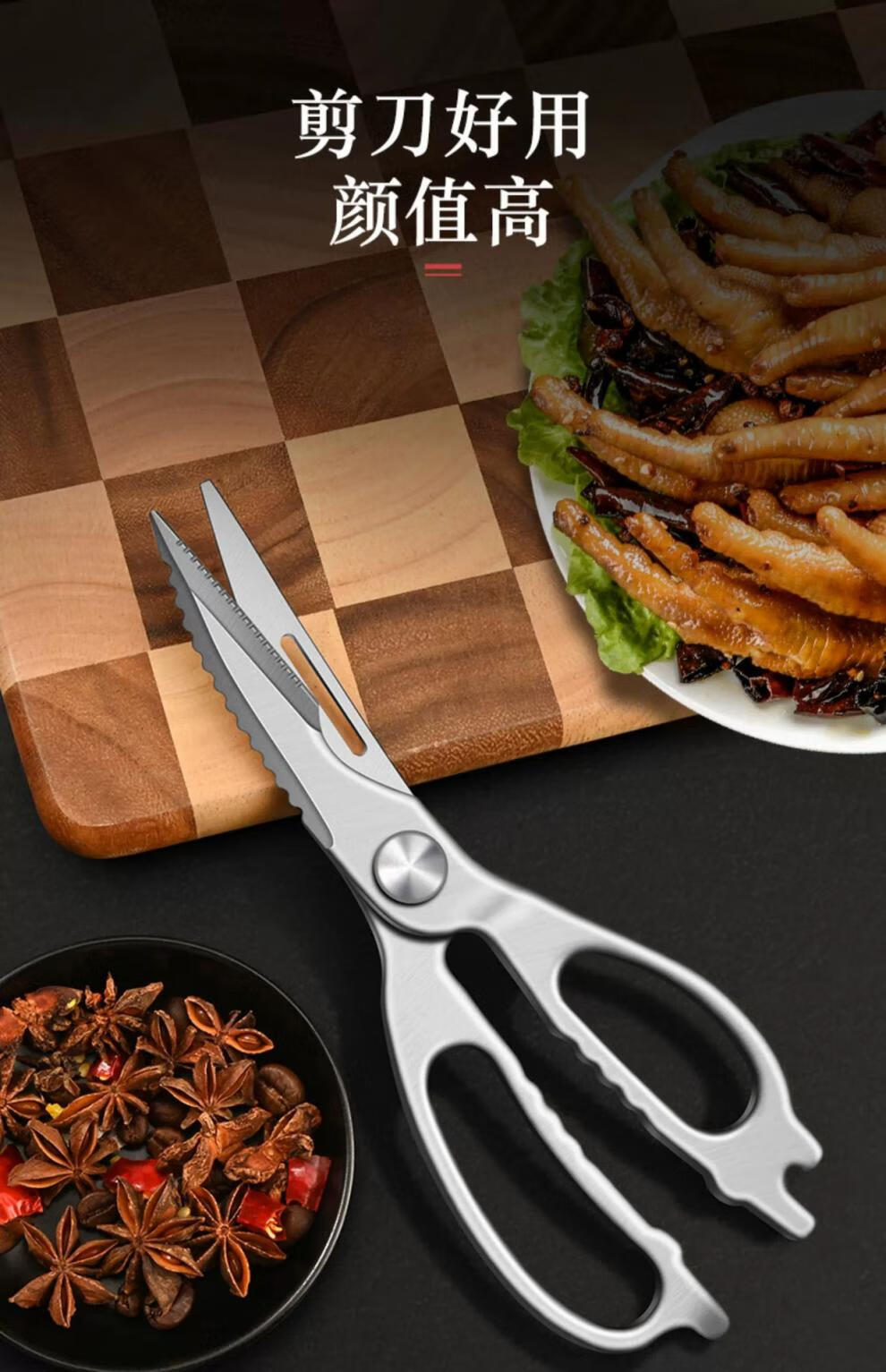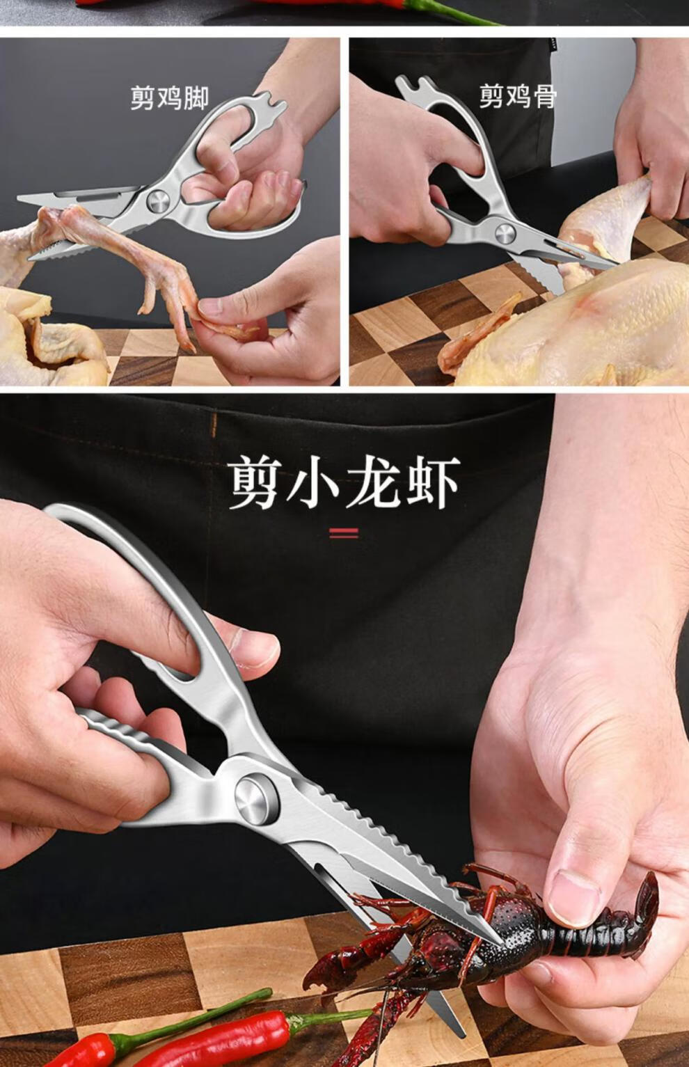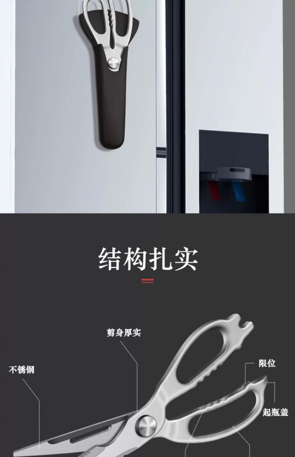 PLYS kitchen scissors, household chicken bone scissors, stainless steel barbecue scissors, multi-functional bone scissors, powerful scissors, all-steel kitchen scissors
