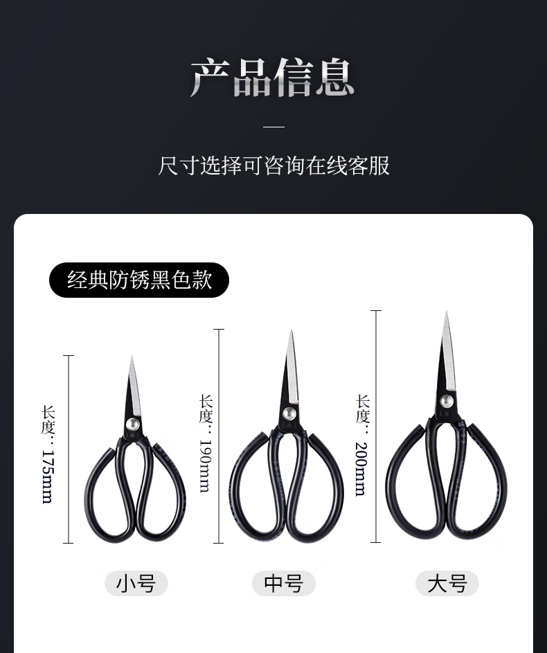 Wang Mazi Tijeras multifuncionales de acero inoxidable Tijeras civiles Tijeras industriales Tijeras de oficina puntiagudas Ropa Tijeras de sastre Modelo negro clásico de gran tamaño
