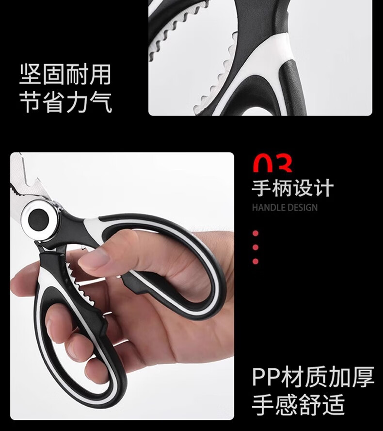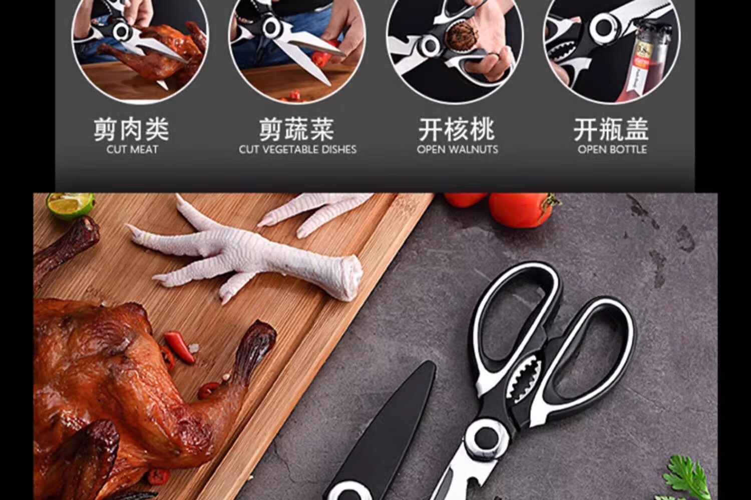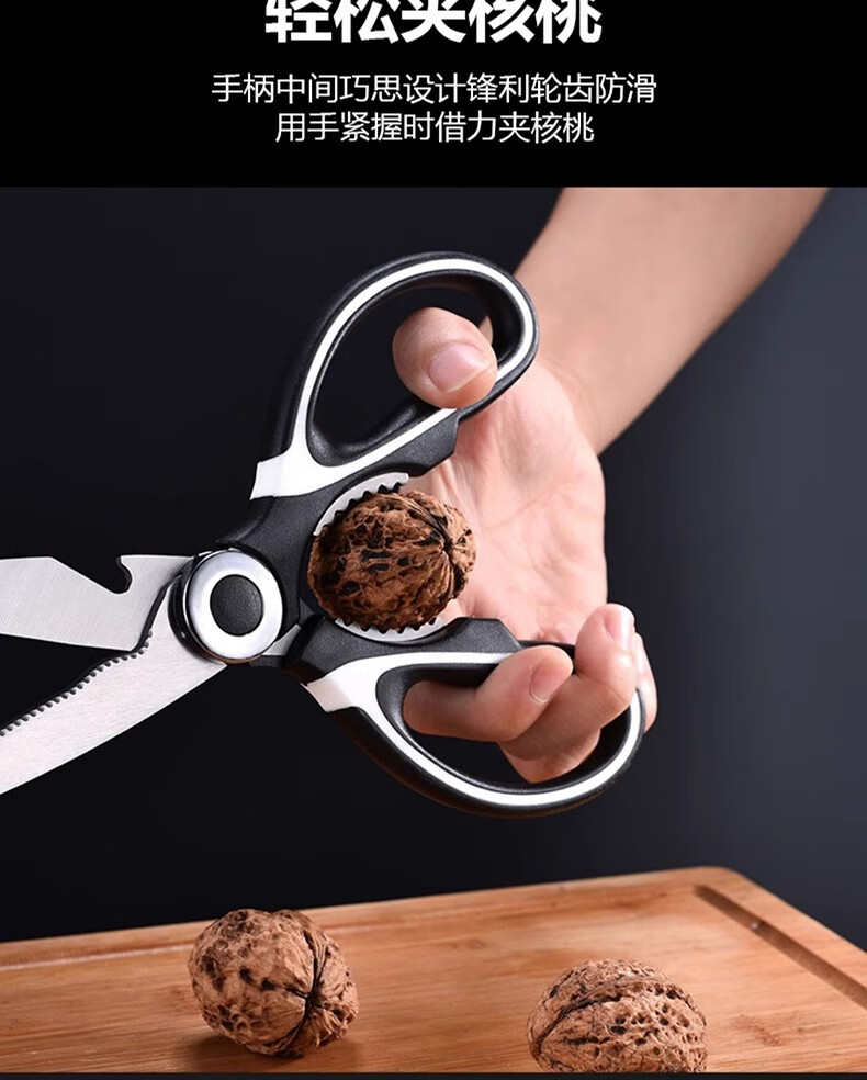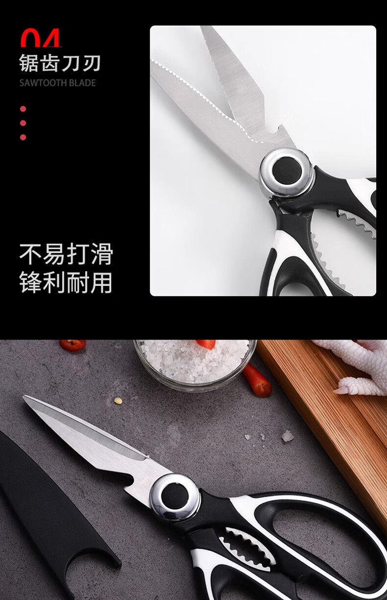 ZOZX Tijeras de Cocina Alemanas, Tijeras Multifuncionales para el hogar, Tijeras Especiales para complementos alimenticios de Calidad Avanzada, Tijeras para Alimentos para Barbacoa afiladas avanzadas, Tijeras para Huesos de Pollo, Negro 1 par