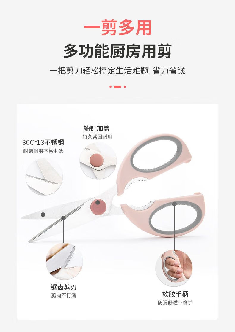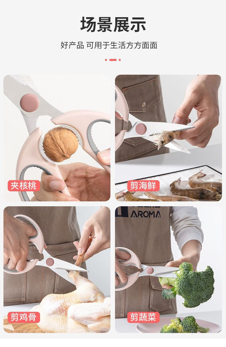 Tijeras de cocina, tijeras comestibles, tijeras de cocina, tijeras multifuncionales para barbacoa, tijeras para complementos alimenticios de calidad alimentaria, tijeras multifuncionales - raíz de loto rosa