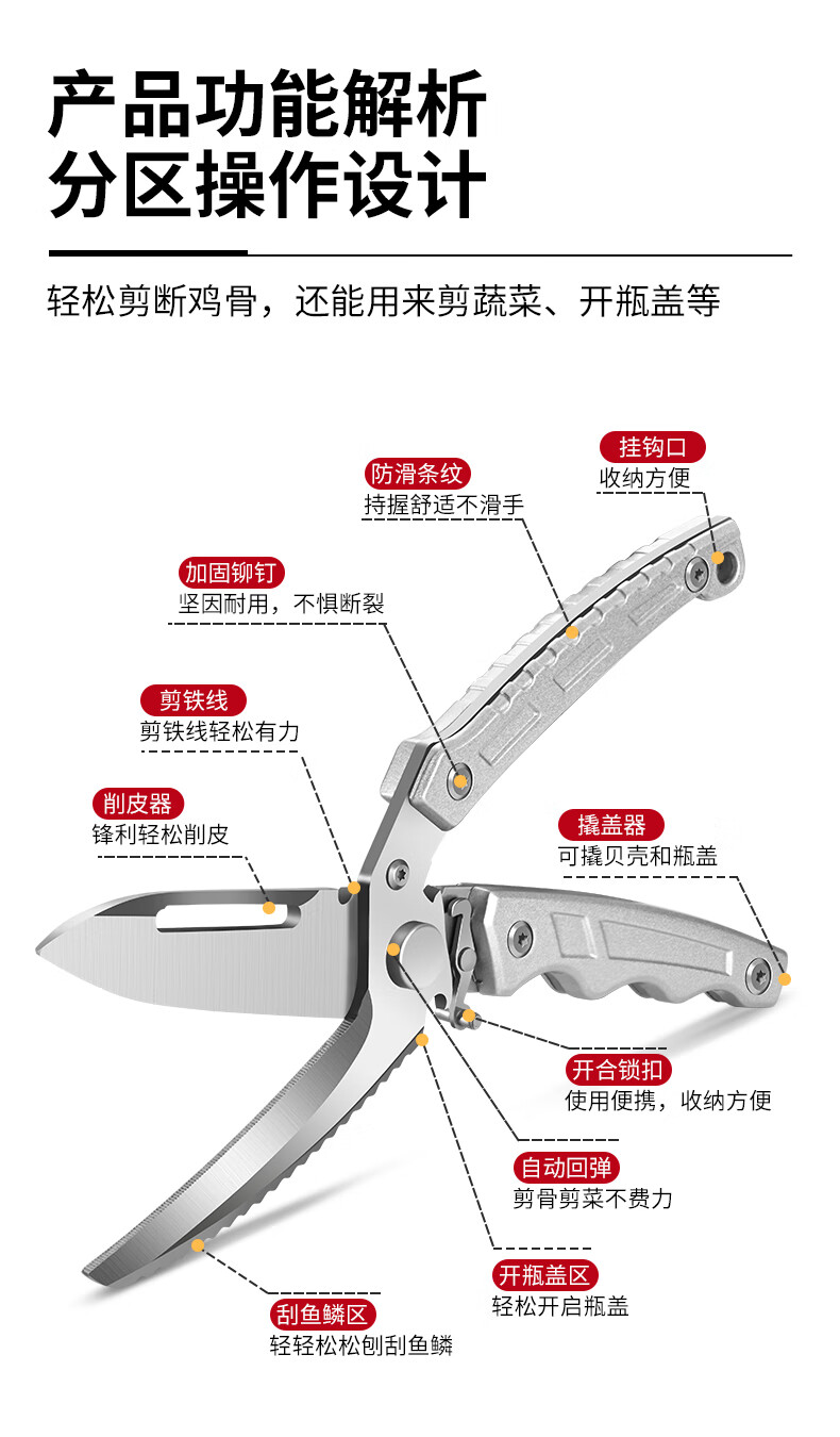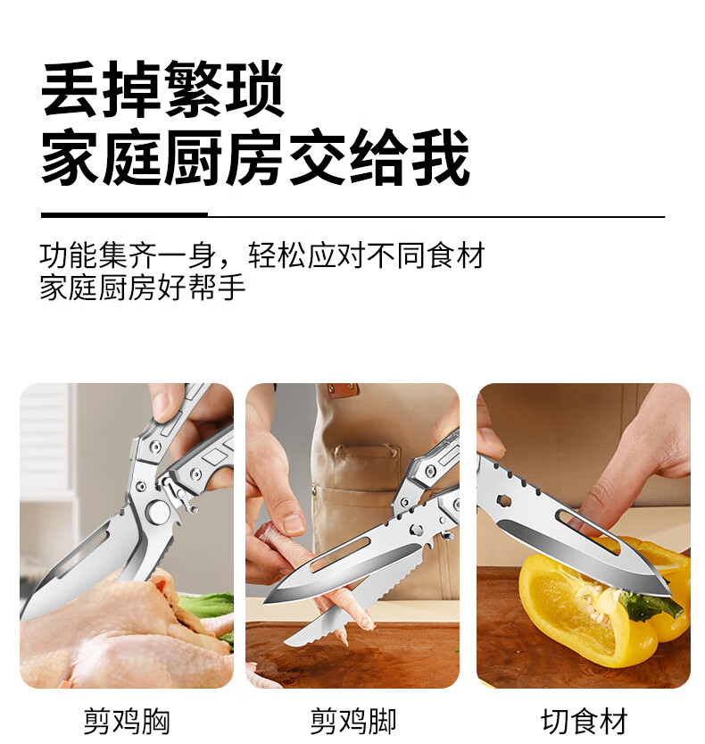 兴刃强力鸡骨剪家用厨房专用剪刀不锈钢多功能杀鱼剪鸡鸭鹅骨头食物剪 强力鸡骨剪【多功能】