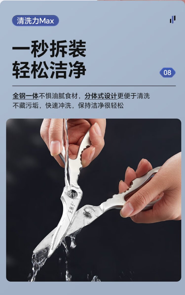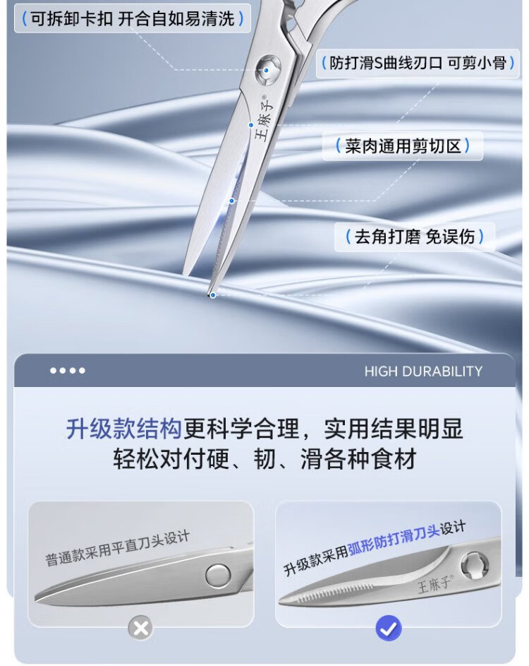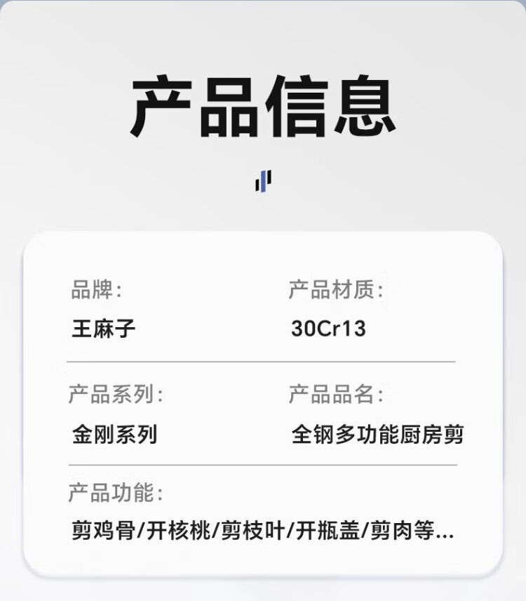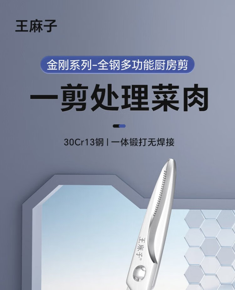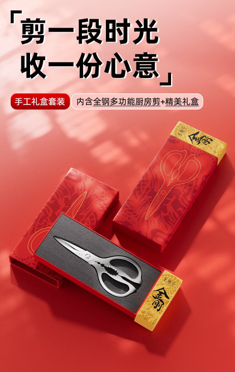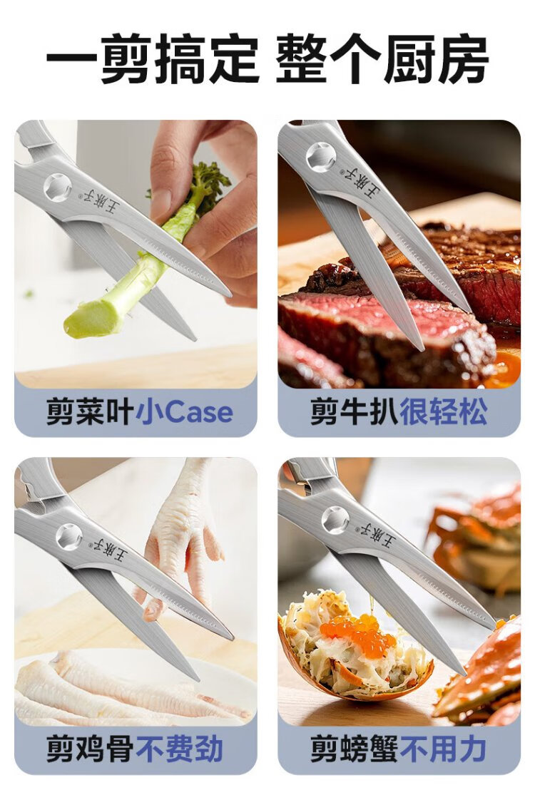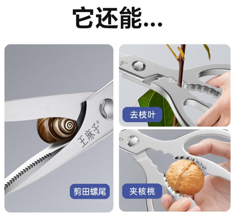 Wang Mazi kitchen scissors, all-steel all-in-one household chicken bone cutter, steak food barbecue scissors, multi-functional scissors, all-steel scissors, gift box