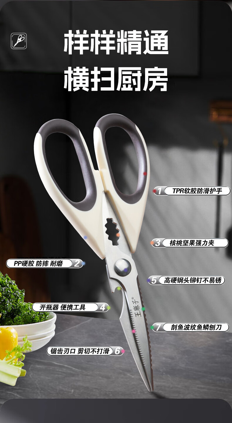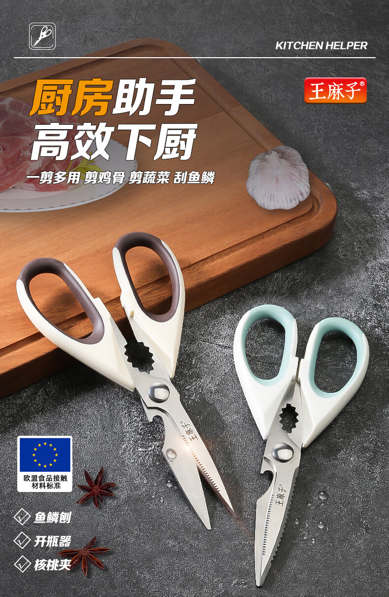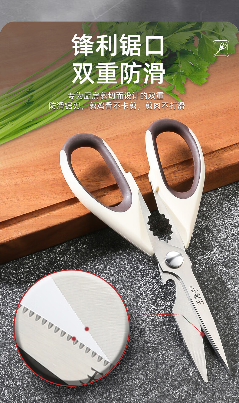 Tijeras de cocina Wang Mazi, tijeras de cocina domésticas de calidad alimentaria, comida para matar carne de hueso de pollo y pescado, tijeras multifuncionales de acero inoxidable (actualización antioxidante) tijeras de cocina de titanio