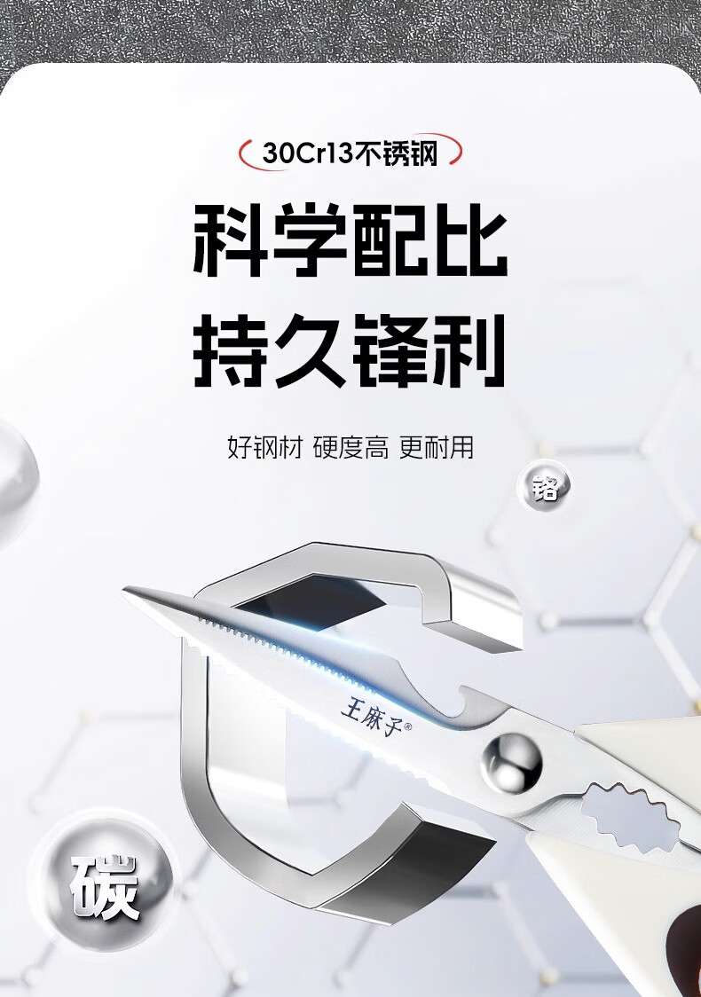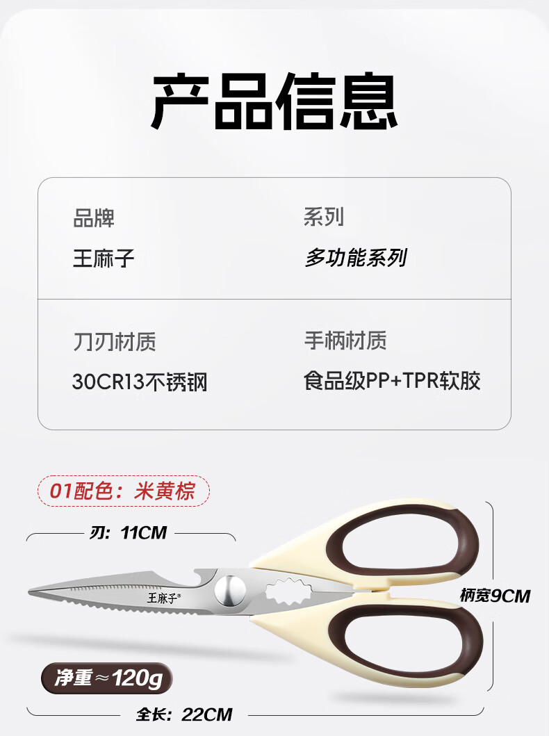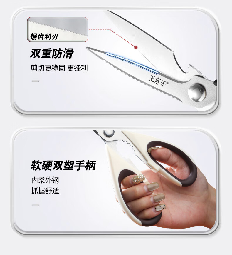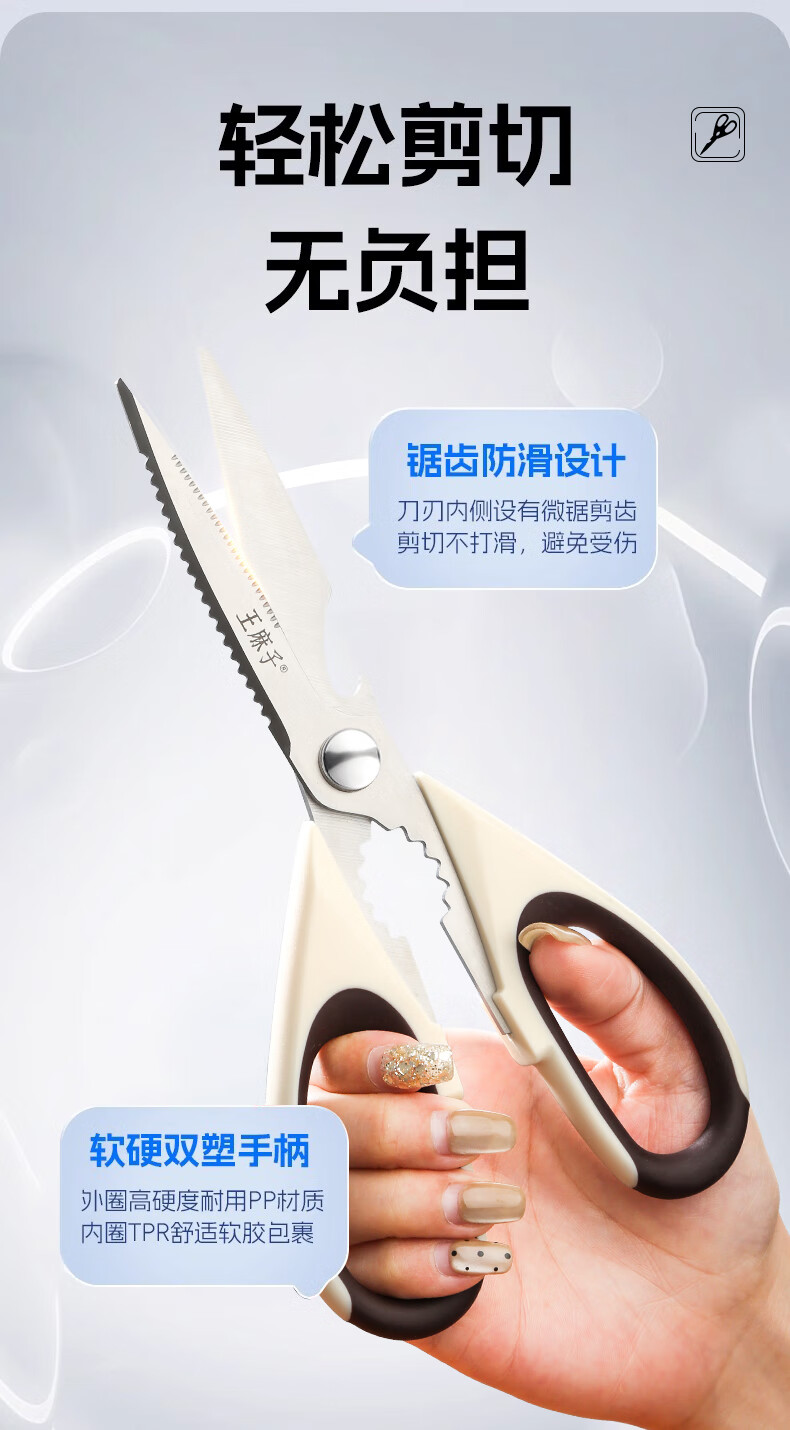 Tijeras de cocina Wang Mazi, tijeras de cocina domésticas de calidad alimentaria, comida para matar carne de hueso de pollo y pescado, tijeras multifuncionales de acero inoxidable (actualización antioxidante) tijeras de cocina de titanio