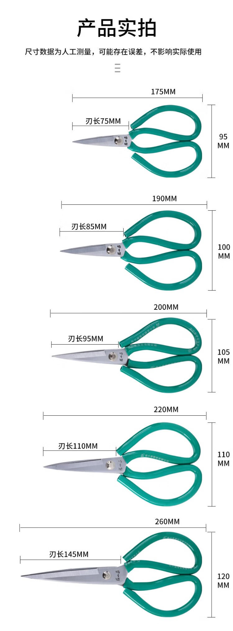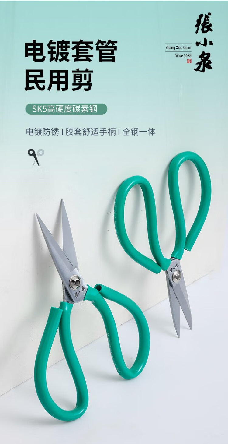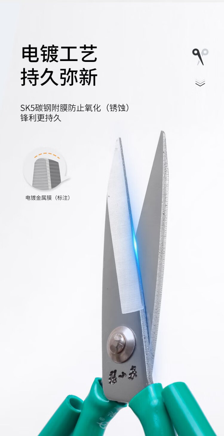 Zhang Xiaoquan tijeras auténticas de acero inoxidable para el hogar, sastrería puntiaguda, corte de papel de oficina, costura hecha a mano, tijeras industriales multifuncionales pequeñas y grandes, extra grandes, 220 mm, galvanizadas, inoxidables, SK5, acero con alto contenido de carbono, totalmente de acero, corte afilado de una sola pieza, tela y artículos de cuero