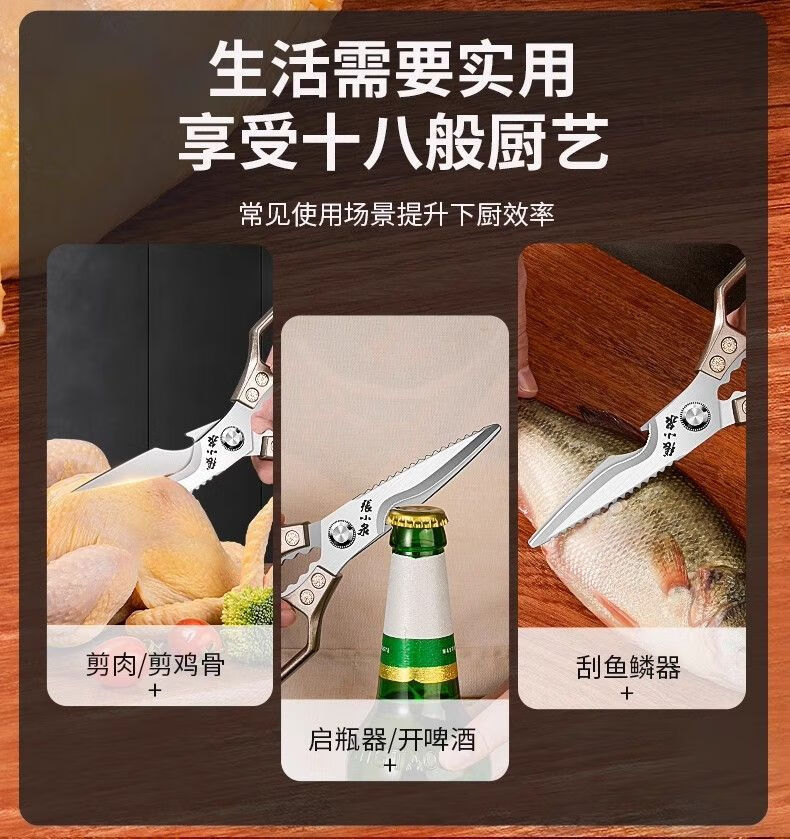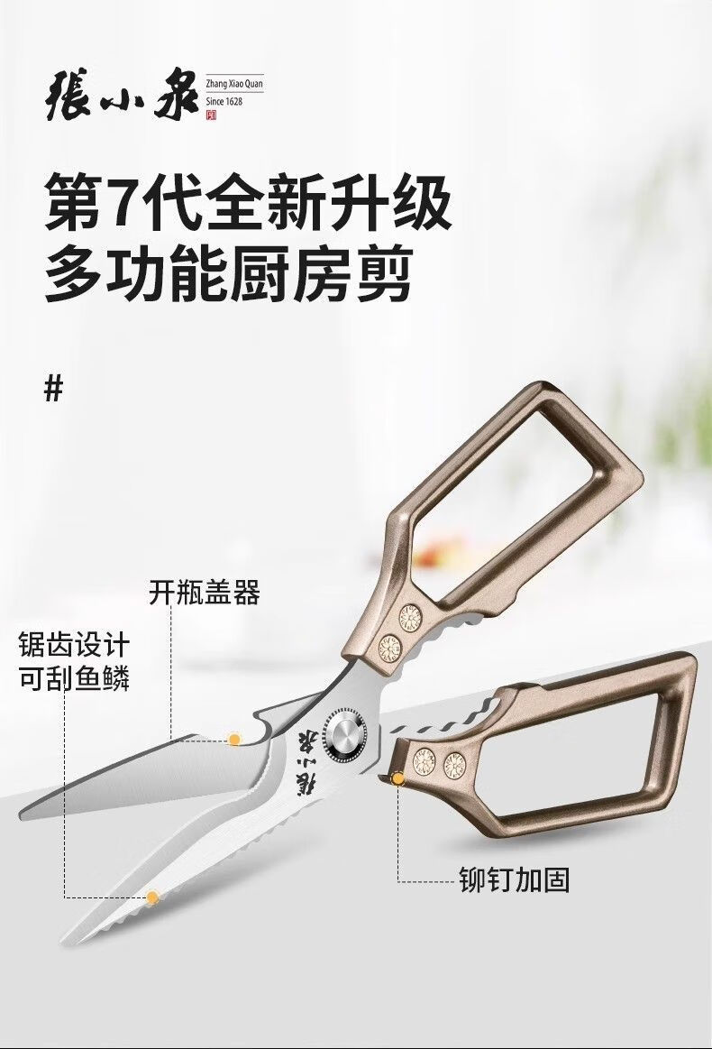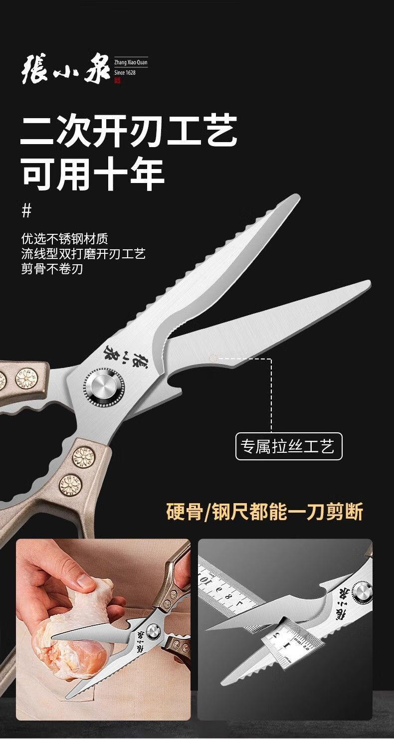 Zhang Xiaoquan kitchen scissors household strong chicken bone scissors stainless steel multi-functional food grade scissors chicken, duck and goose bones special scissors strong kitchen scissors