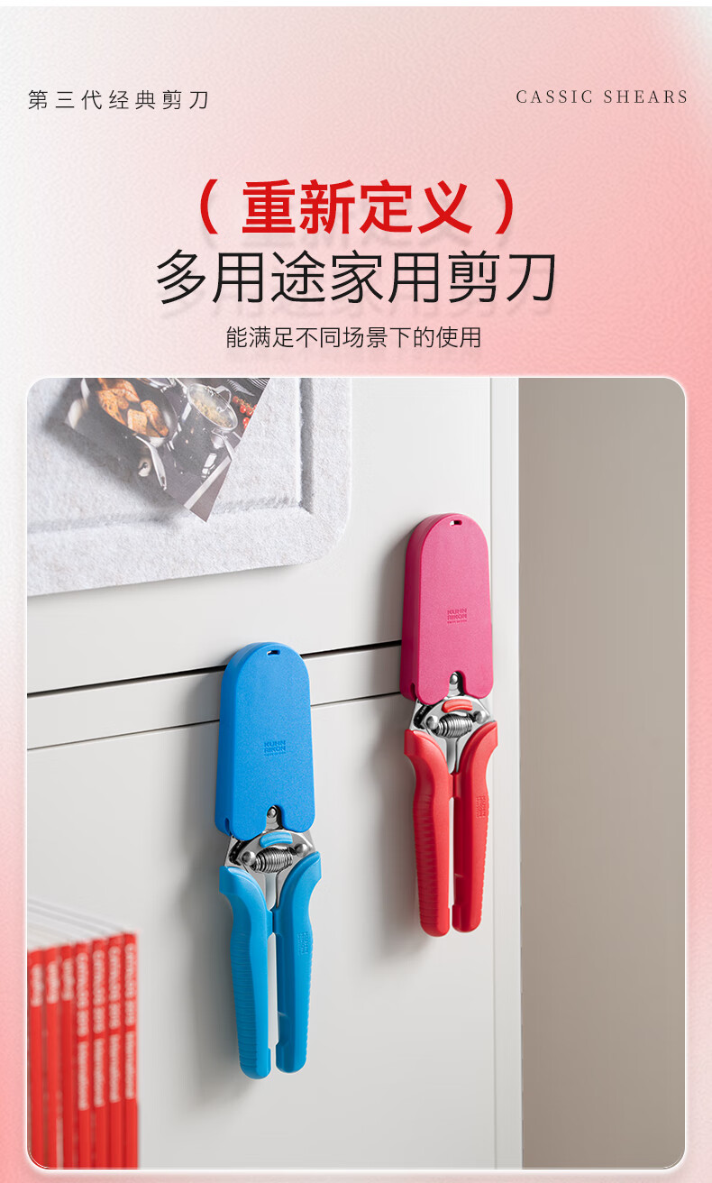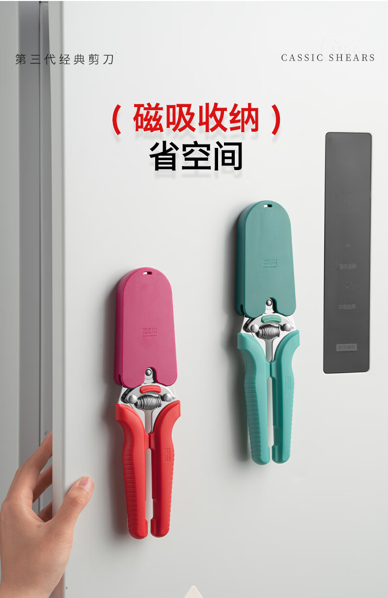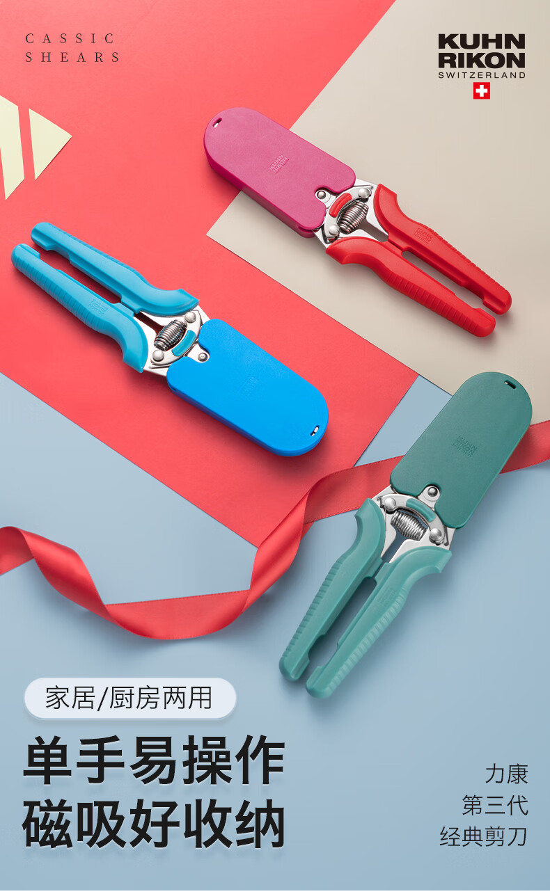 Swiss KUHN RIKON Tijeras magnéticas para el hogar, Tijeras de jardinería de Oficina Multifuncionales de Cocina Hechas a Mano de Acero Inoxidable, Tijeras artísticas, Rojo Carmesí, Estilo magnético