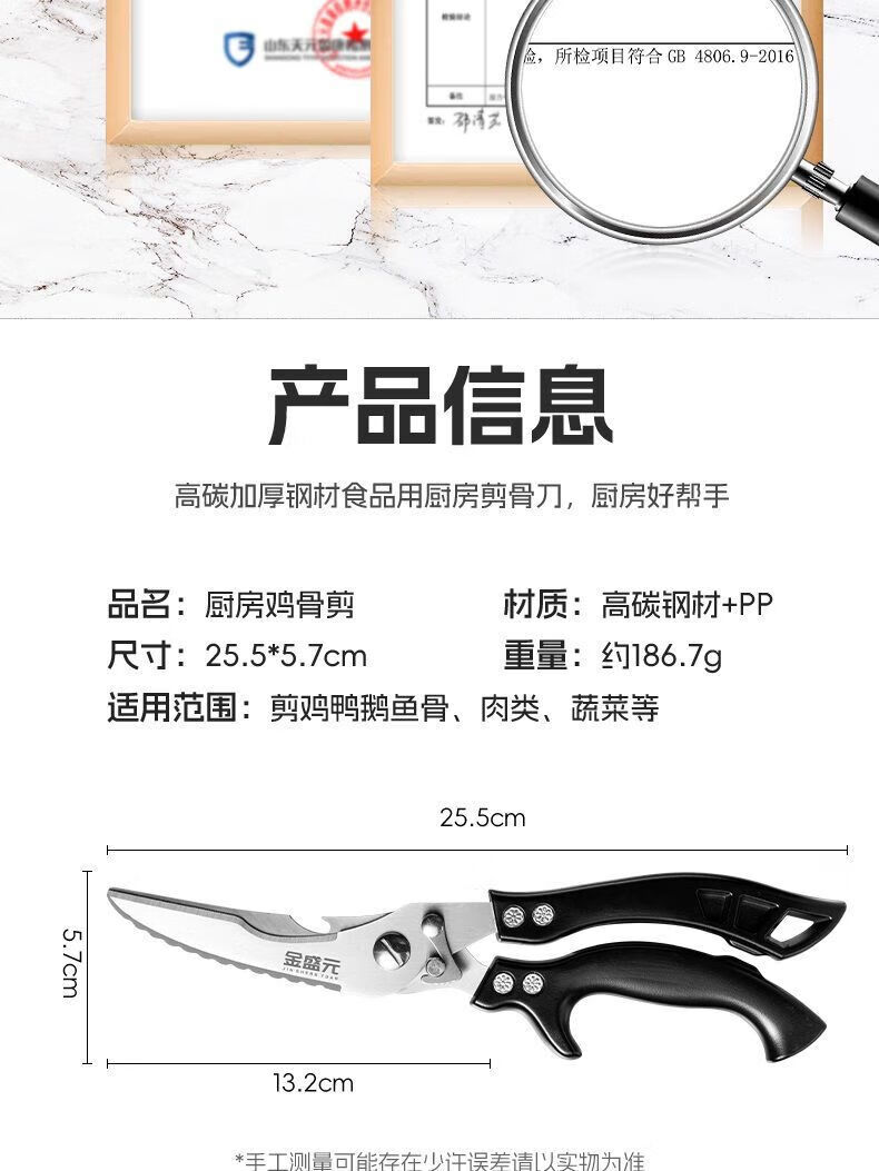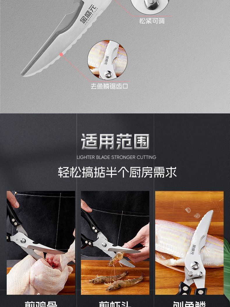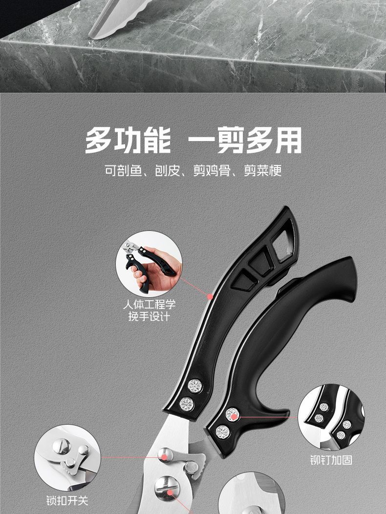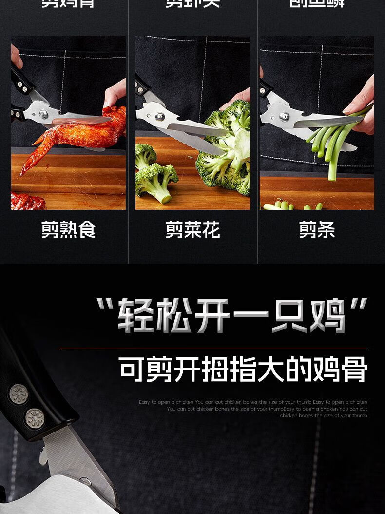 胖东来德国厨房剪刀多功能家用钛钢强力剪鸡鸭鹅骨头专用进口剪子食品级 大号强力鸡骨剪