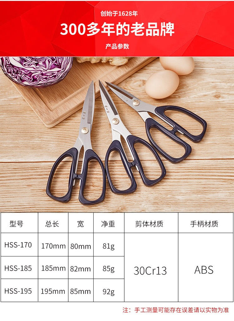 张小泉 剪刀 办公剪 不锈钢家用剪多功能剪子鸡鸭家用强力剪刀 HSS-195