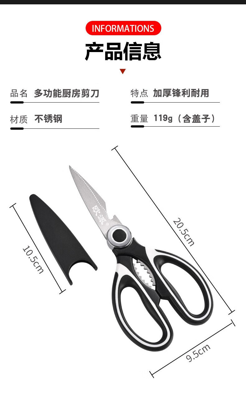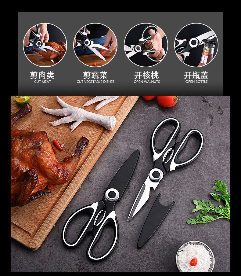 Oppei Tijeras de Cocina Multifuncionales de Acero Inoxidable Tijeras para Huesos de Pollo Fuertes Tijeras para Huesos Barbacoa Deli Cocina Tijeras para Huesos de Alimentos Tijeras para Huesos de Pollo en Blanco y Negro
