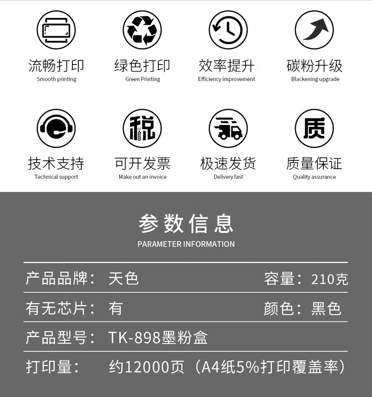 Tianse TK898 powder cartridge black standard version suitable for Kyocera C8020/FS-C8025 printer powder cartridge 8520/FS-C8525 ink cartridge tk898 toner cartridge