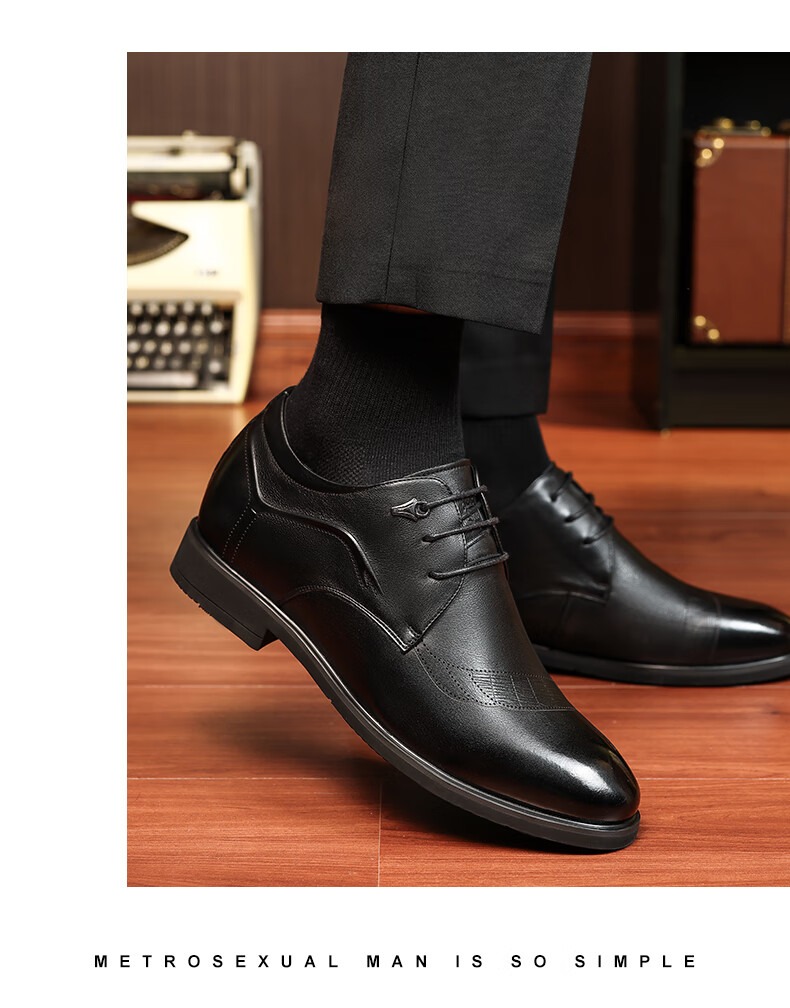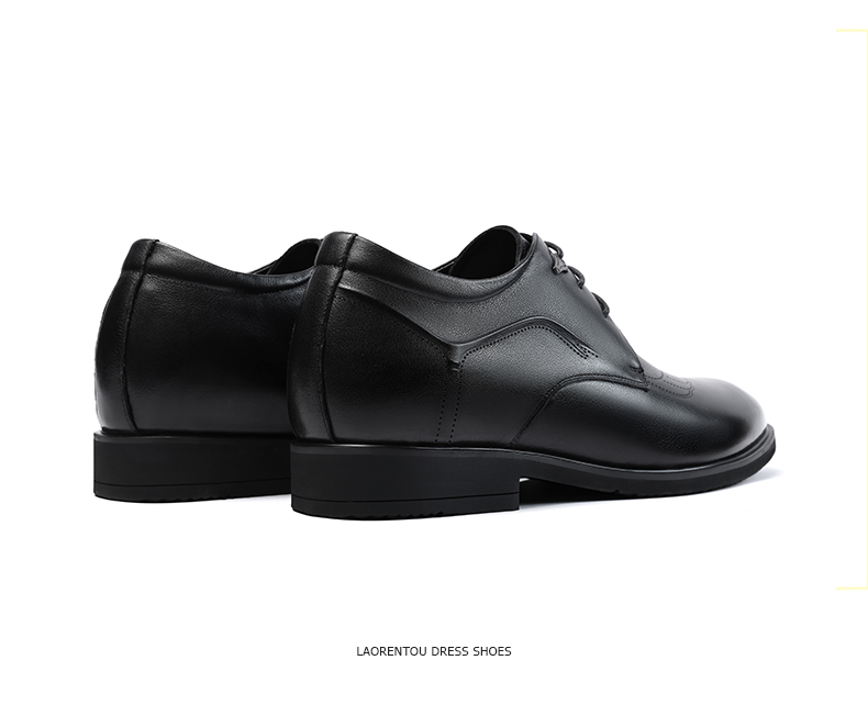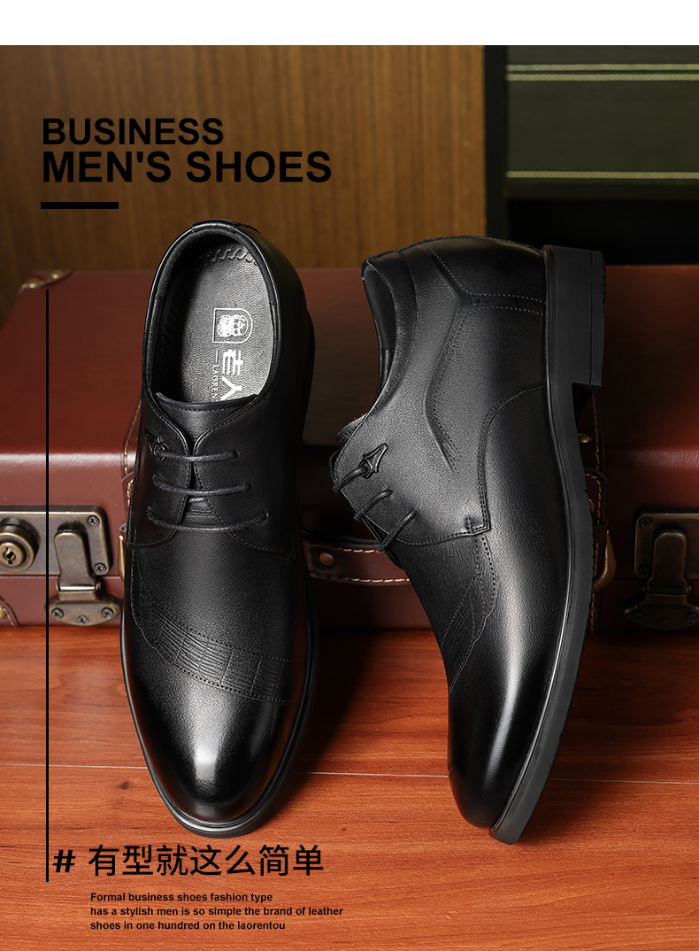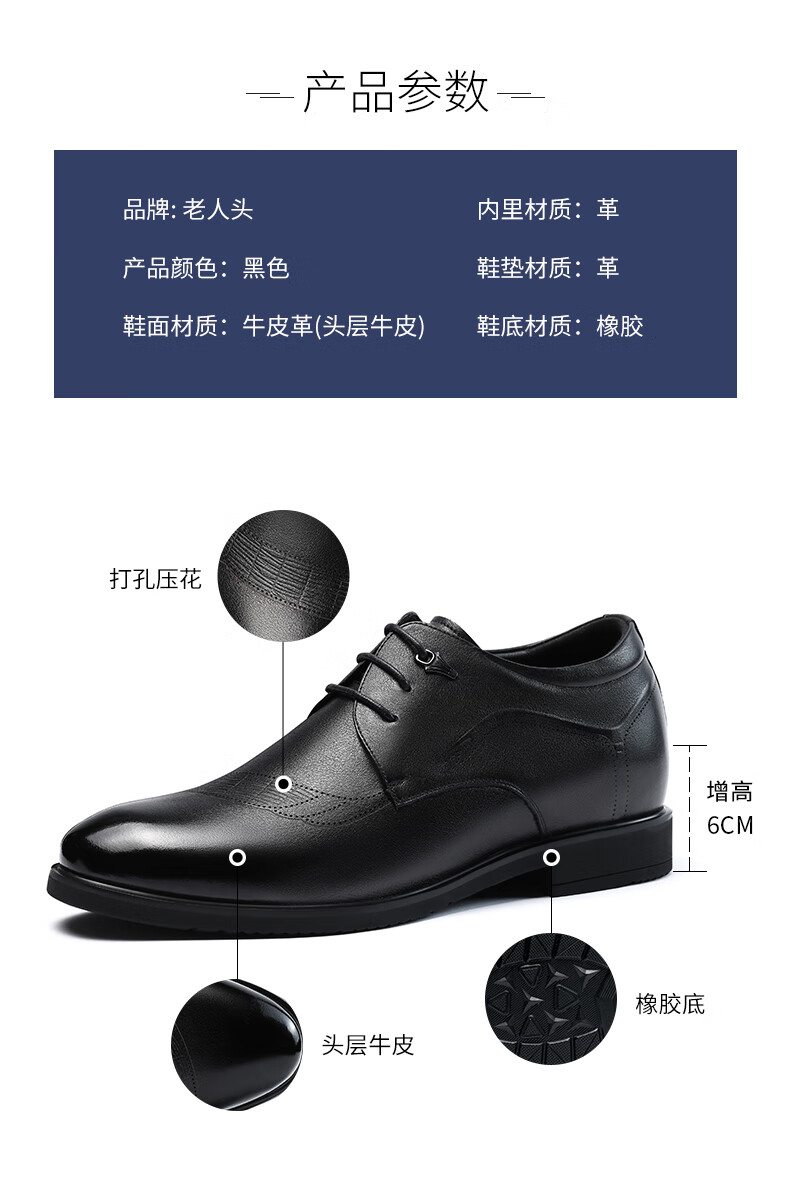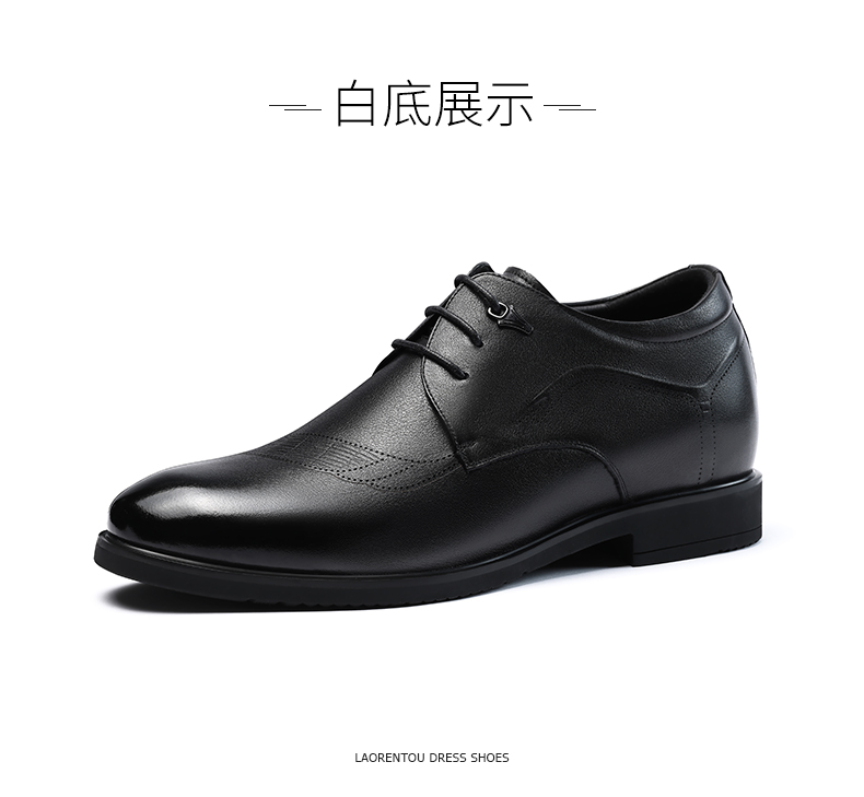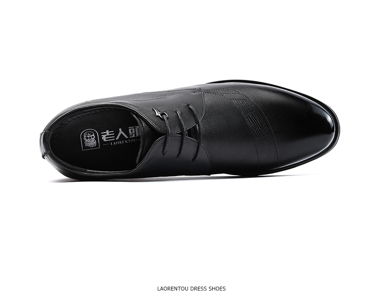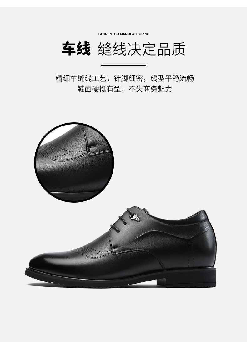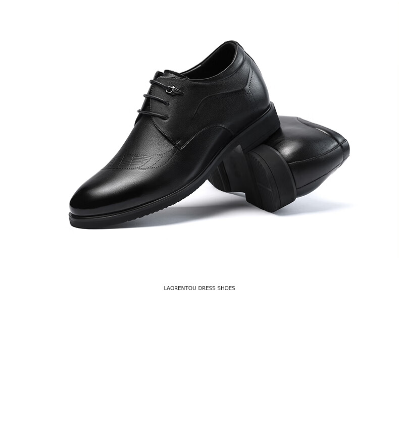 老人头(LAORENTOU)皮鞋男士头层牛皮鞋商务休闲正装鞋小码隐形内增高鞋 130362 黑40