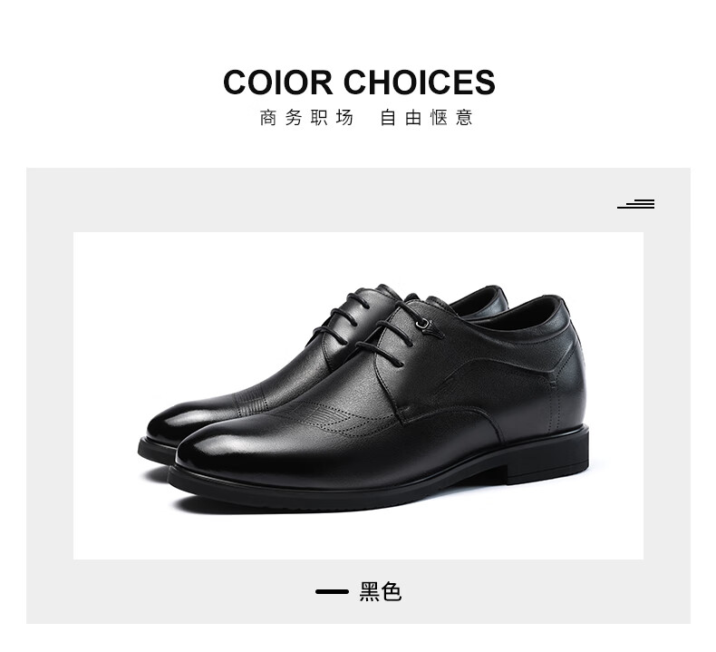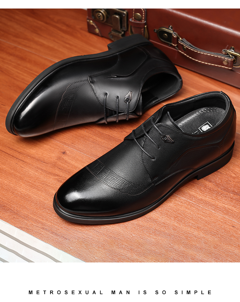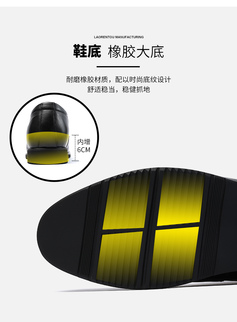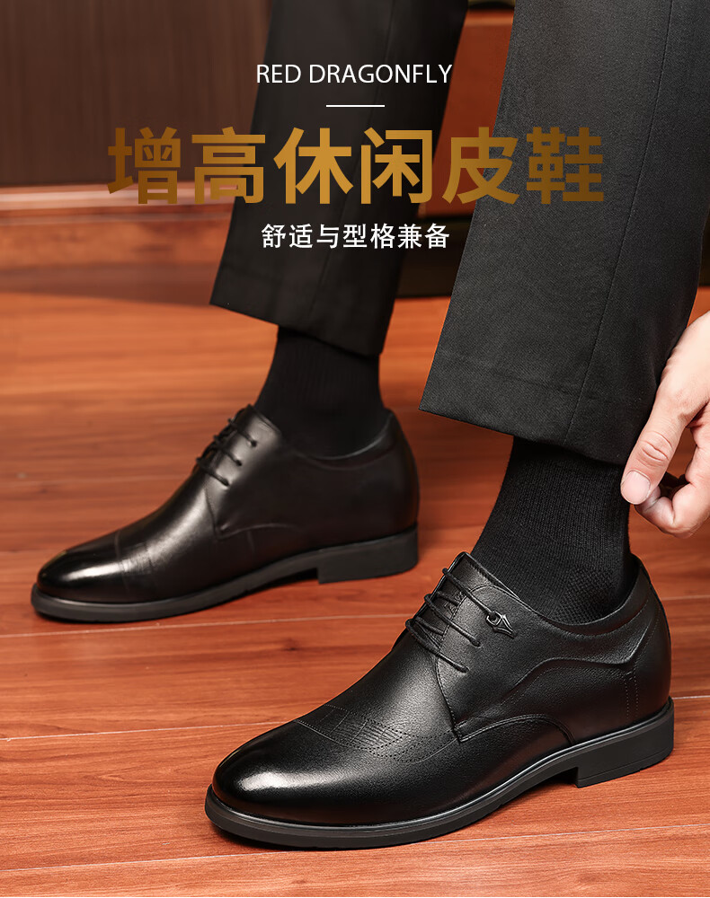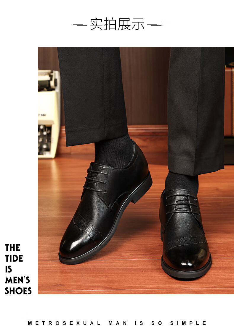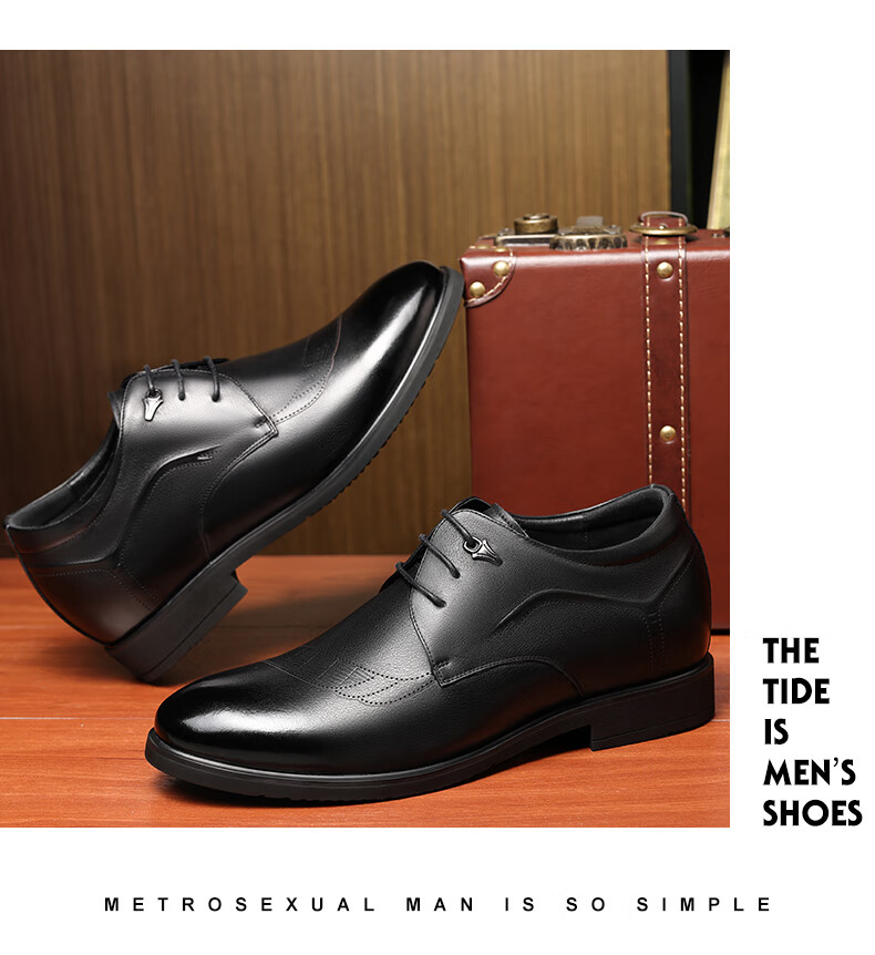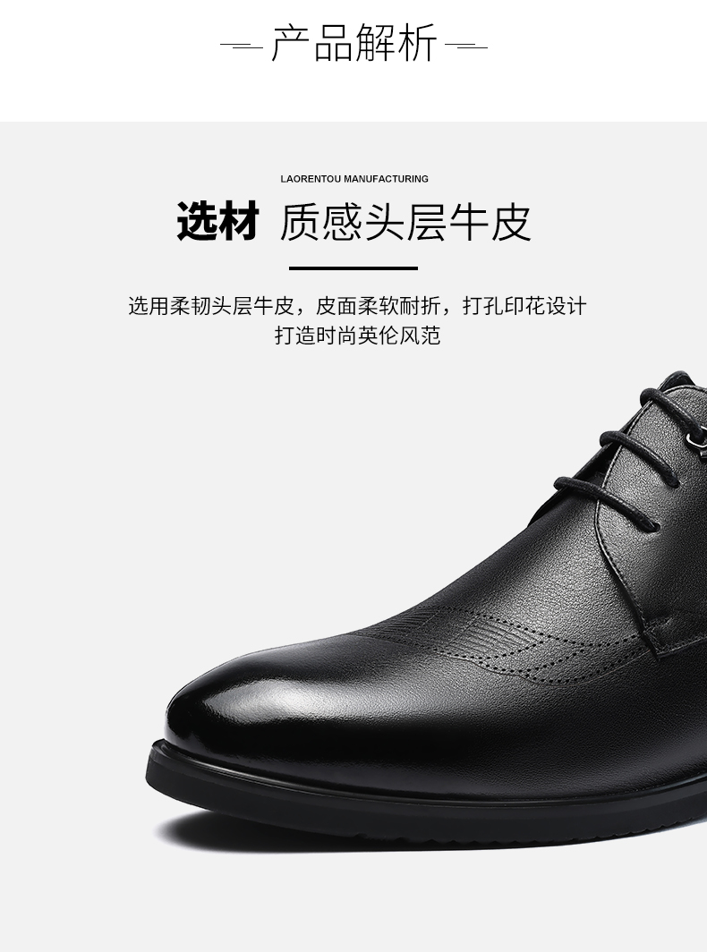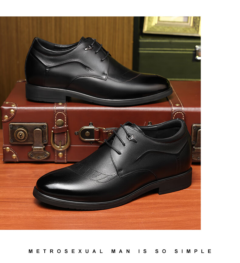 老人头(LAORENTOU)皮鞋男士头层牛皮鞋商务休闲正装鞋小码隐形内增高鞋 130362 黑40