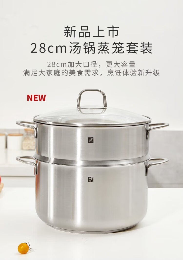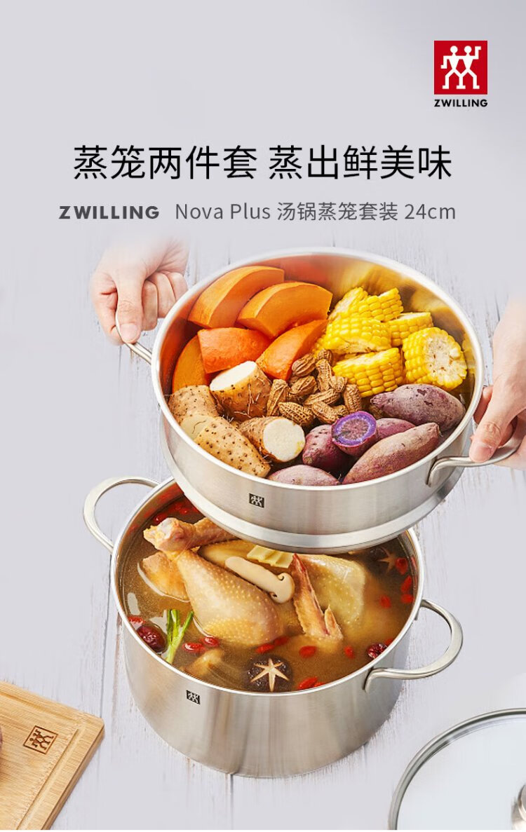 ZWILLING olla a vapor de acero inoxidable, olla para sopa, vaporera para pescado, bollos al vapor, olla para sopa, juego NovaPlus, 24cm